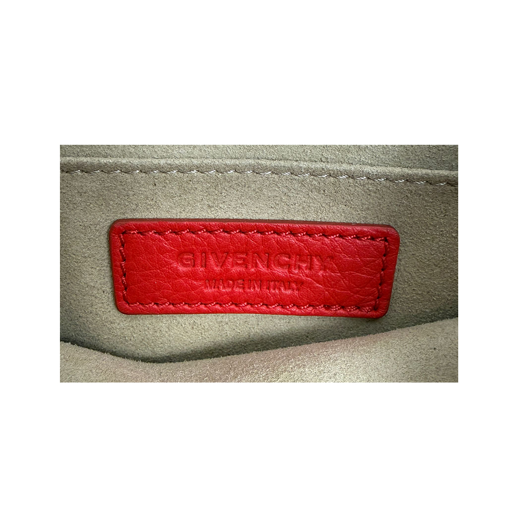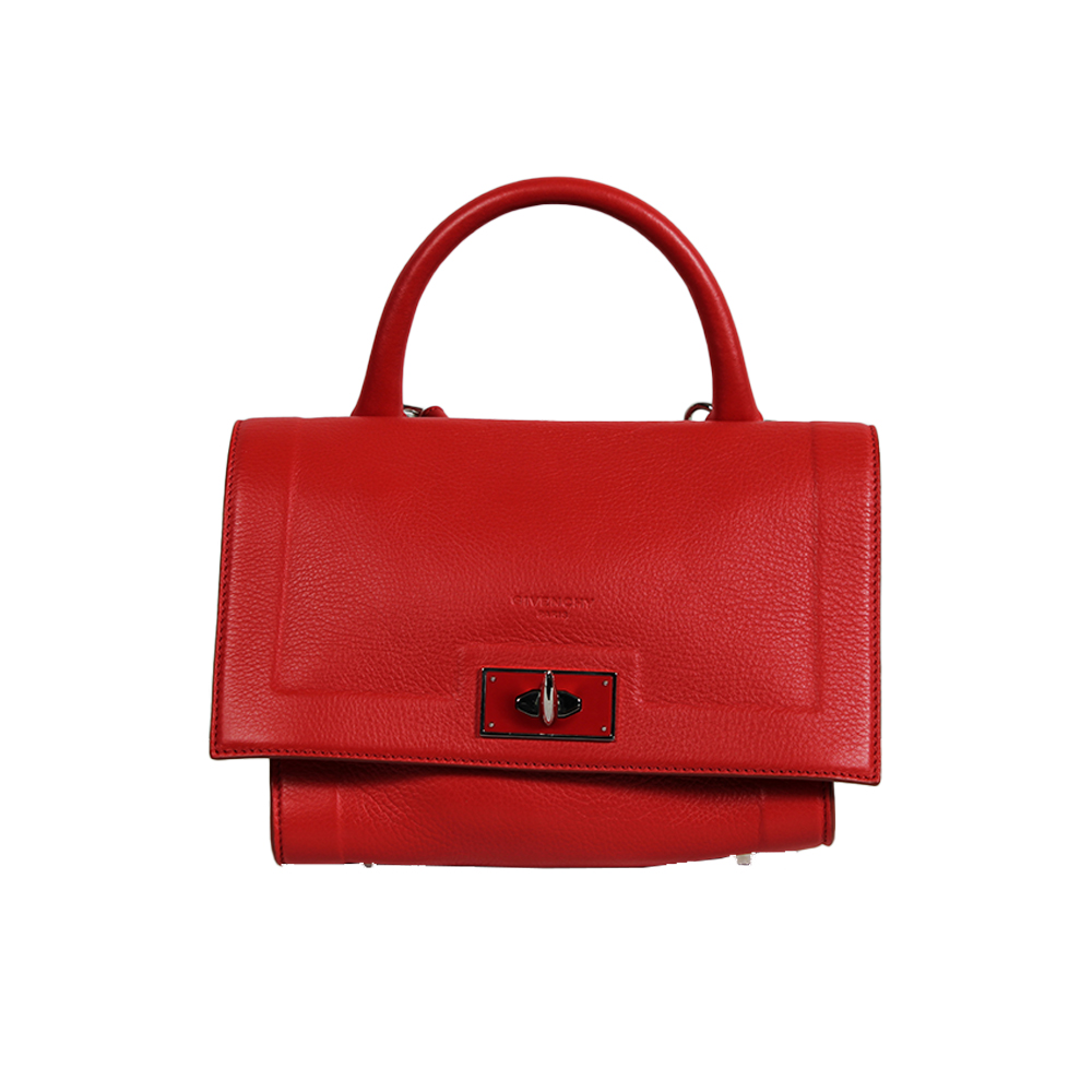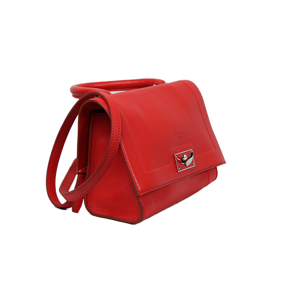 GIVENCHY, BORSA A MANO MODELLO SHARK in pelle martellata rossa chiusura frontale con placca metallica e gancio inciso manico singolo e tracolla removibile. Interno in suede chiaro con tasca,codice interno MAH1105 Corredata da sacca. Francia anni 2010 h cm 18 x 25