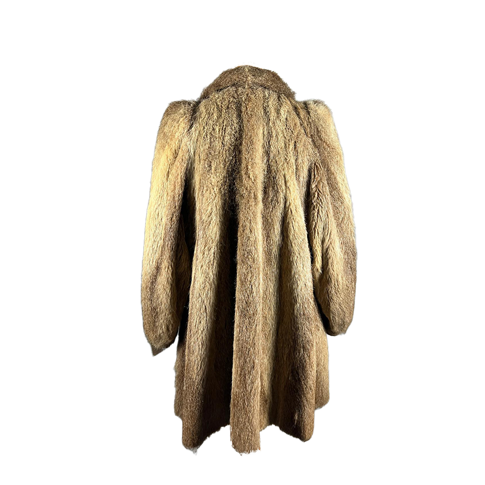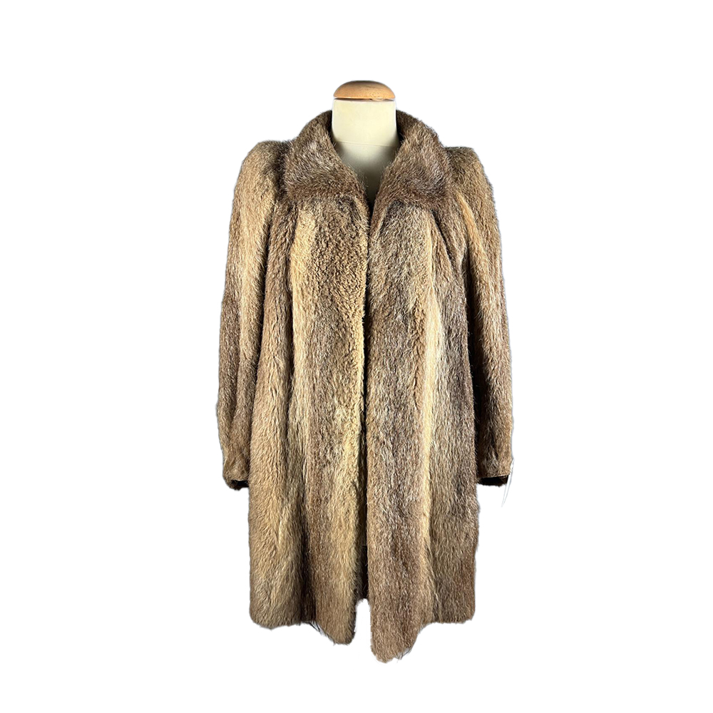 CAPPOTTO IN PELLICCIA tonalità biondo miele con sfumature dorate interno in raso color nocciola rifinito con passamaneria Italia anni 50/60