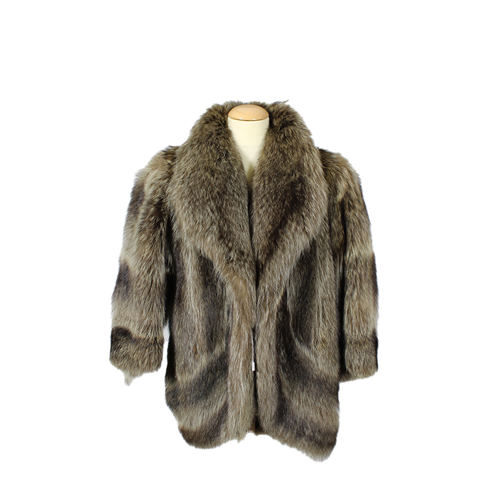 ELEGANTE PELLICCIA IN VOLPE NATURALE TAGLIA IT 48/50 collo ampio a scialle e taglio corto. Fodera interna in seta scura. Italia anni 70/80.