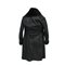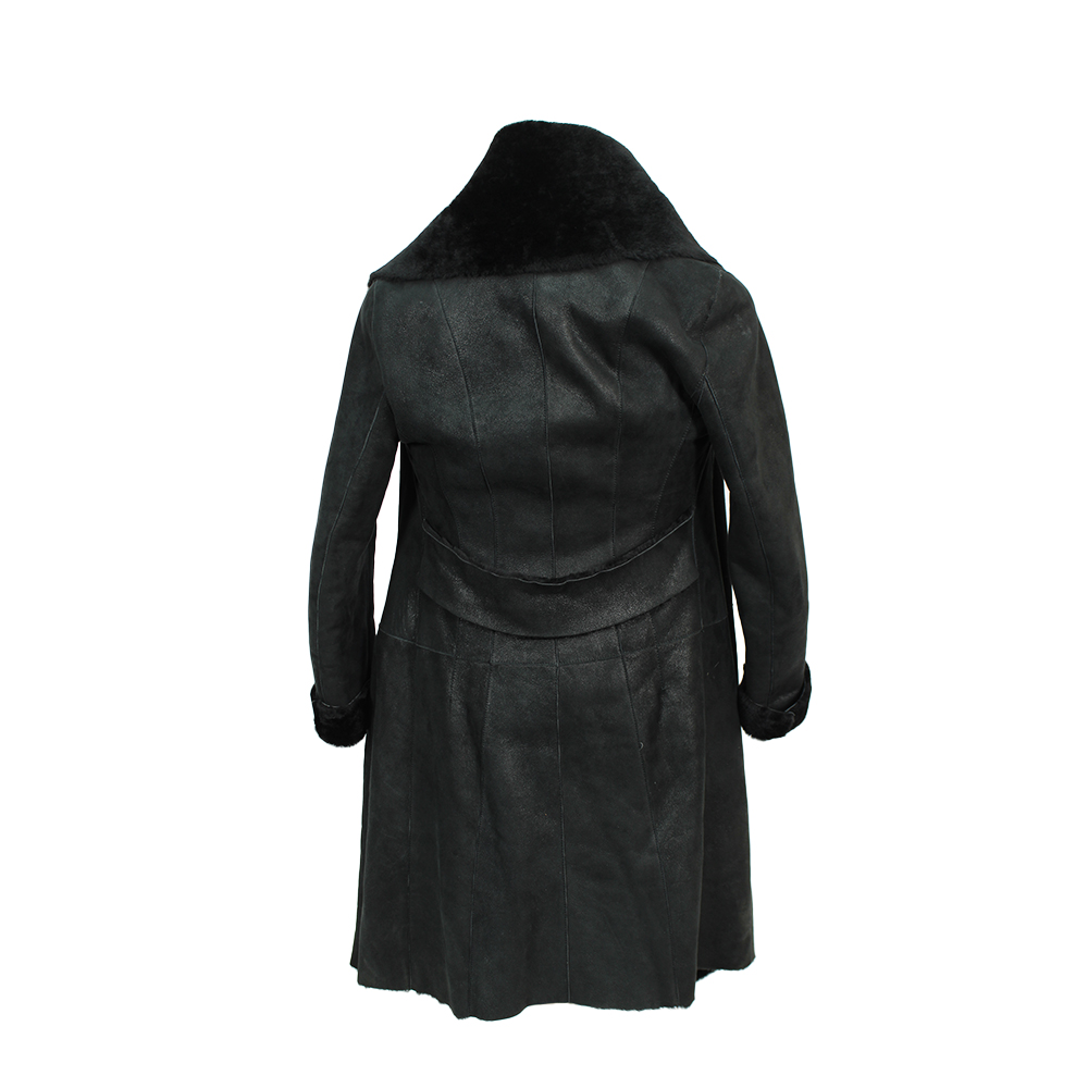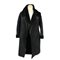DONNA KARAN COLLECTION elegante cappotto in pelle rovesciata nera con interno e ampi revers in pelliccia sherling rasata, primi anni 2000 Usa Misura IT S h cm 105 x 46