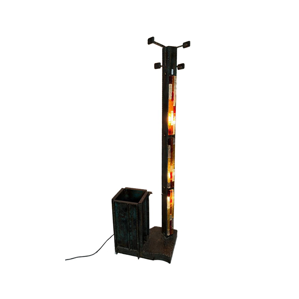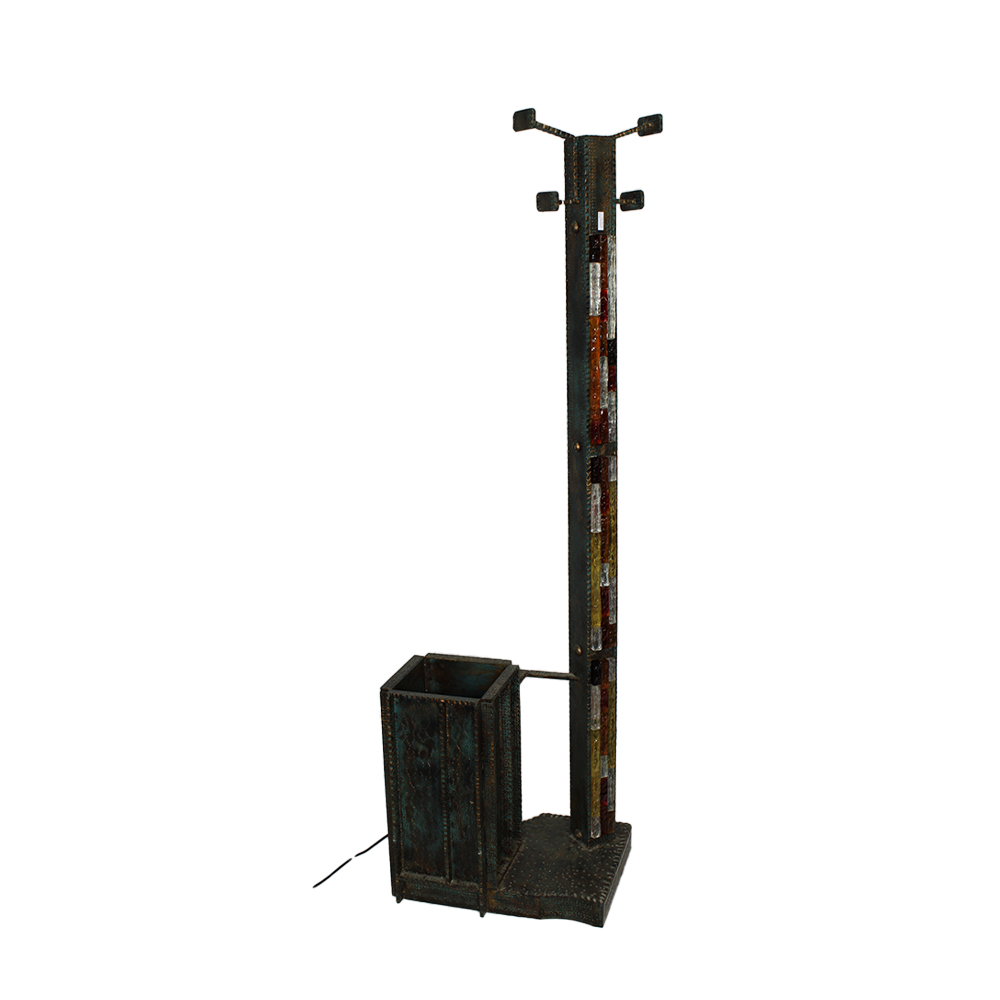 POLIARTE lampada da terra con portabiti in metallo e vetro grezzo Italia anni 70 h cm 173 x 50 x 38