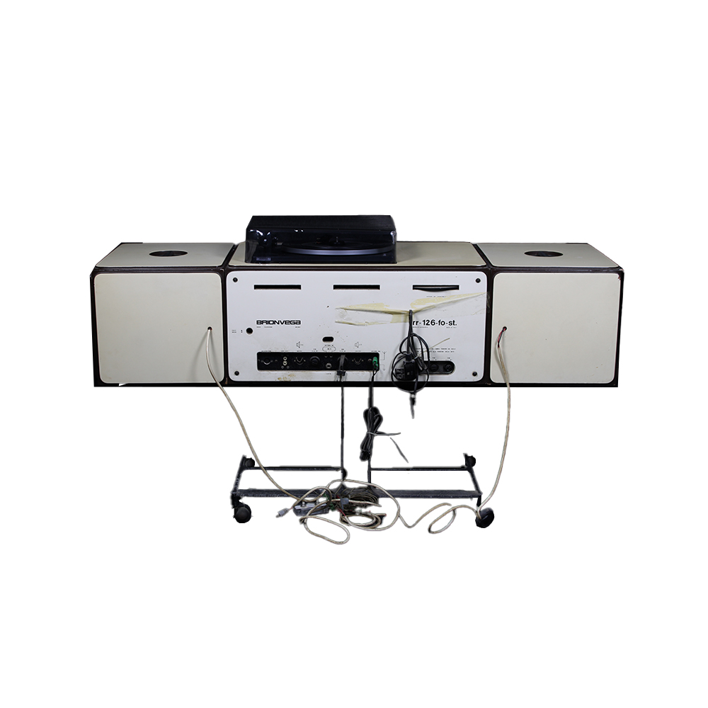 BRIONVEGA, RADIOFONOGRAFO RR126 ACHILLE&PIER GIACOMO CASTIGLIONI 1964 radio con giradischi e diffusori laterali orientabili, piccoli difetti, Italia anni 60/70 h cm 65 x 121 x 36