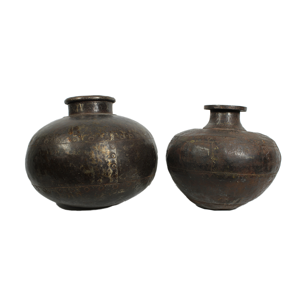LOTTO COMPOSTO DA 2 VASI IN STILE di metallo lavorato produzione estera periodo stimato anni 90 h cm 33 x 35 - h cm 37 x 40