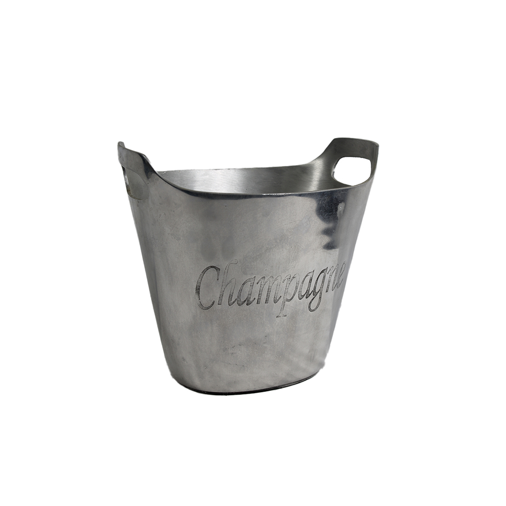 CESTELLO DA GHIACCIO in metallo con scritta champagne incisa, il cestello si presenta in ottime condizioni periodo stimato anni 60 h cm 27 x 32 x 22