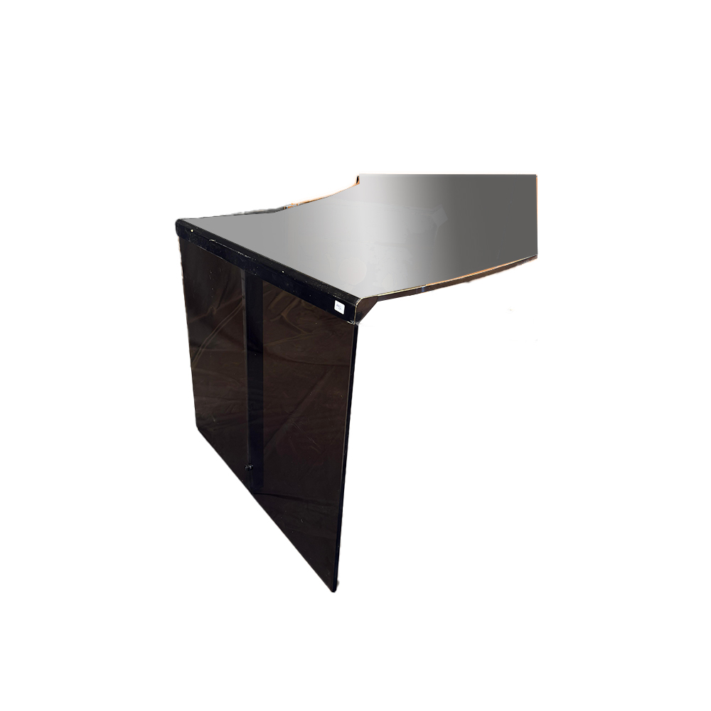 GRANDE SCRIVANIA PRESIDENZIALE CURVA in vetro fume e acciaio , produzione italiana disegnata da Gallotti e Radice periodo stimato anni 80 h cm 74 x 206 x 85,5