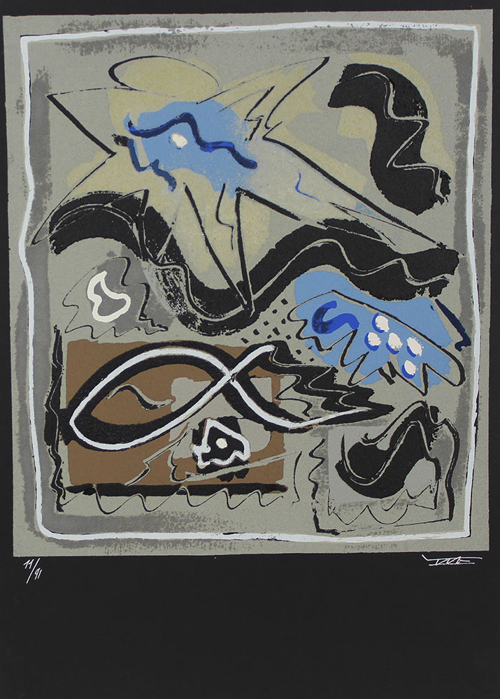 Anonimo Senza titolo serigrafia materica su carta, cm. 70x50, es. 11/91 firma non identificata in basso a destra, timbro a secco "Grassetti Venezia" in basso a destra senza cornice