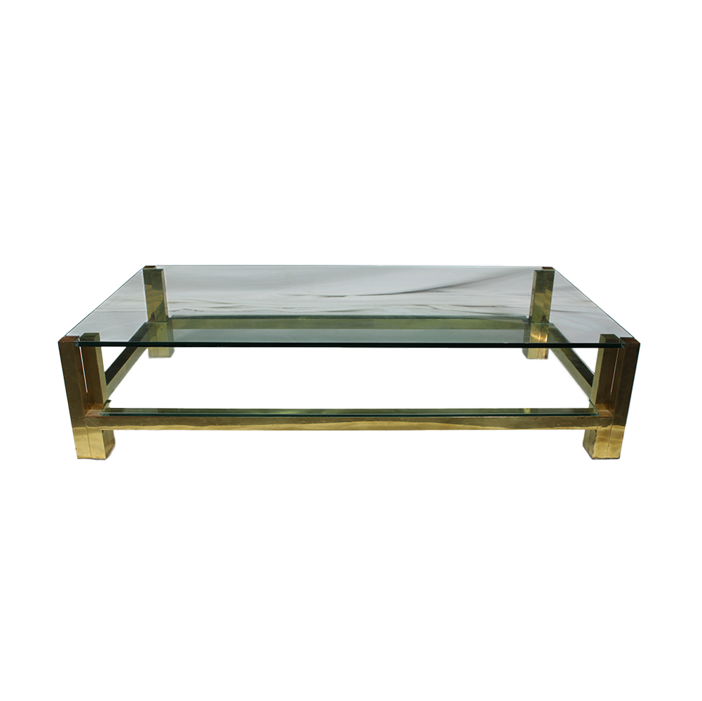 GRANDE TAVOLINO DA SALOTTO in ottone e ripiani in vetro, il tavolino si presenta in buone condizioni ma con normali segni del tempo produzione italiana periodo stimato anni 70 h cm 34,5 x 150 x 80