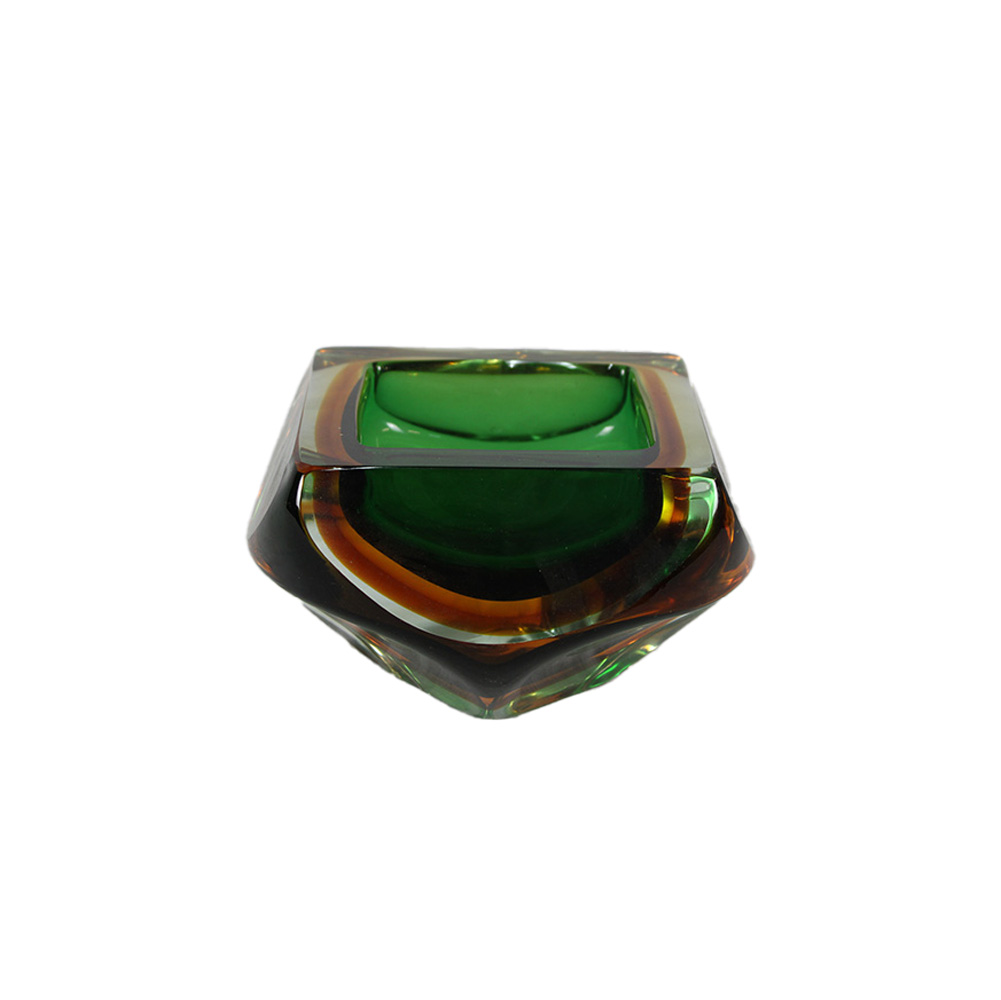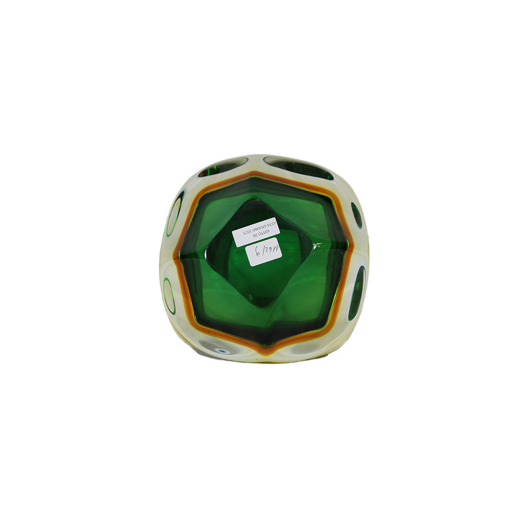 GRANDE CIOTOLA in vetro sommerso di Murano sui toni del verde e del giallo produzione italiana periodo stimato anni 70 h cm 10 x 18 x 18