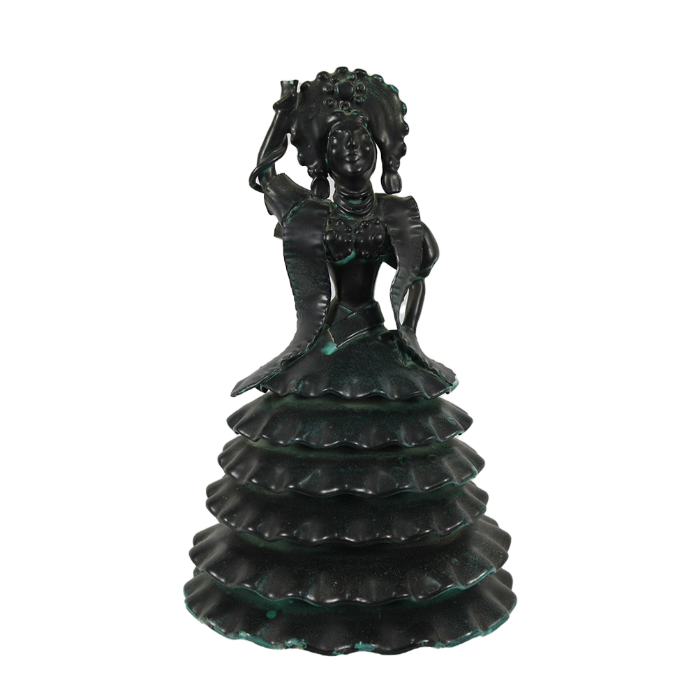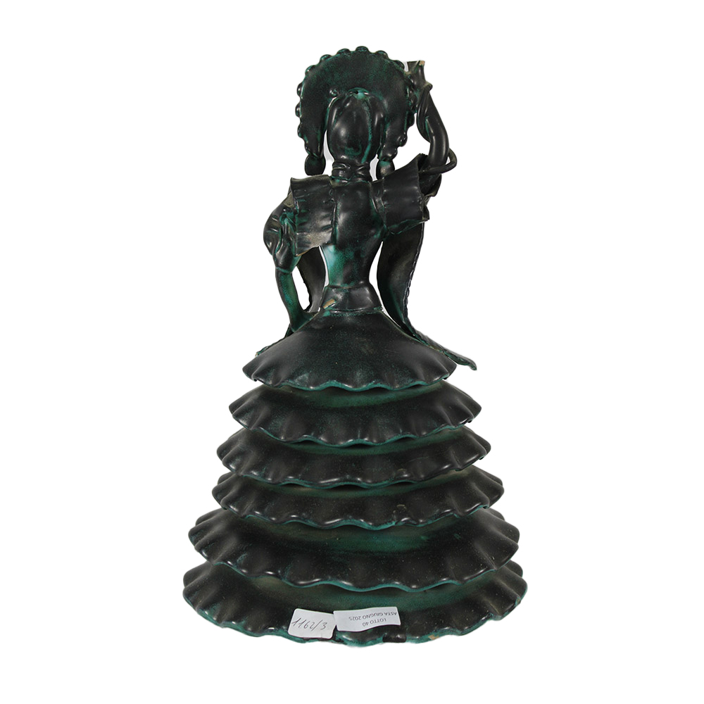 STATUETTA in ceramica smaltata di colore verde petrolio di belle dimensioni, la statuetta ha dei difetti periodo stimato anni 60 h cm 37 x A 23