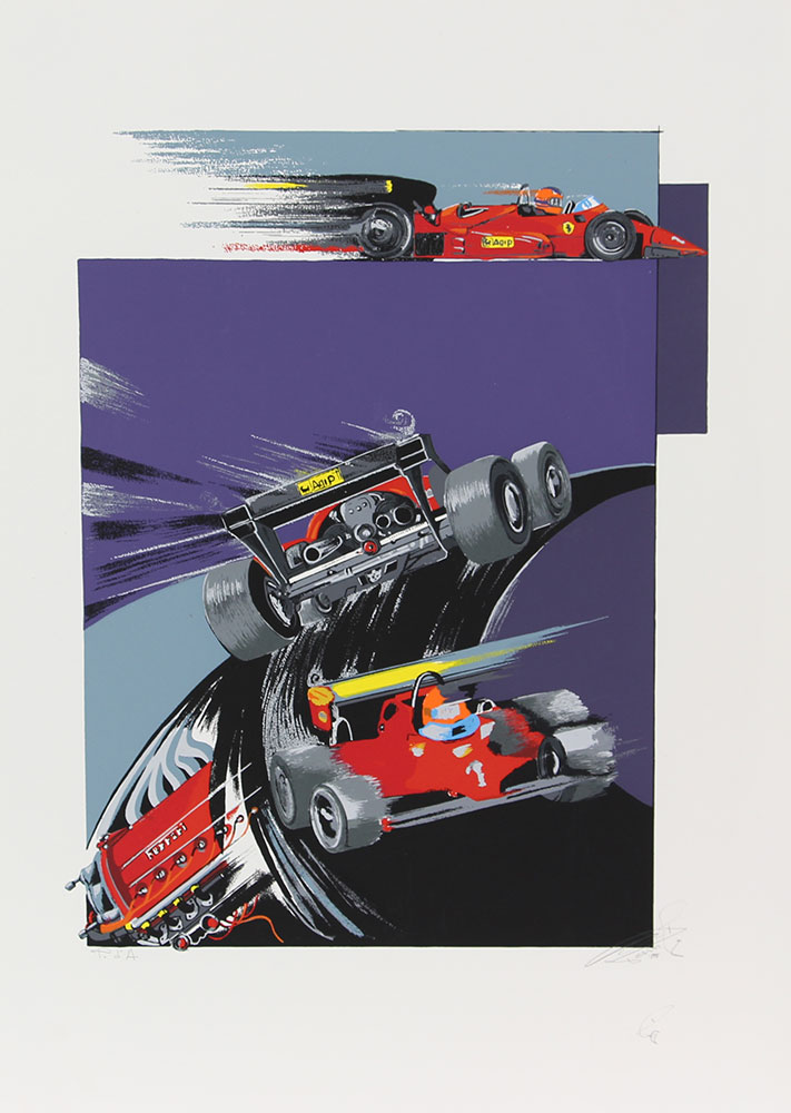 Pezzei Gianni La Ferrari serigrafia su carta, cm. 70x50, es. prova d'autore...