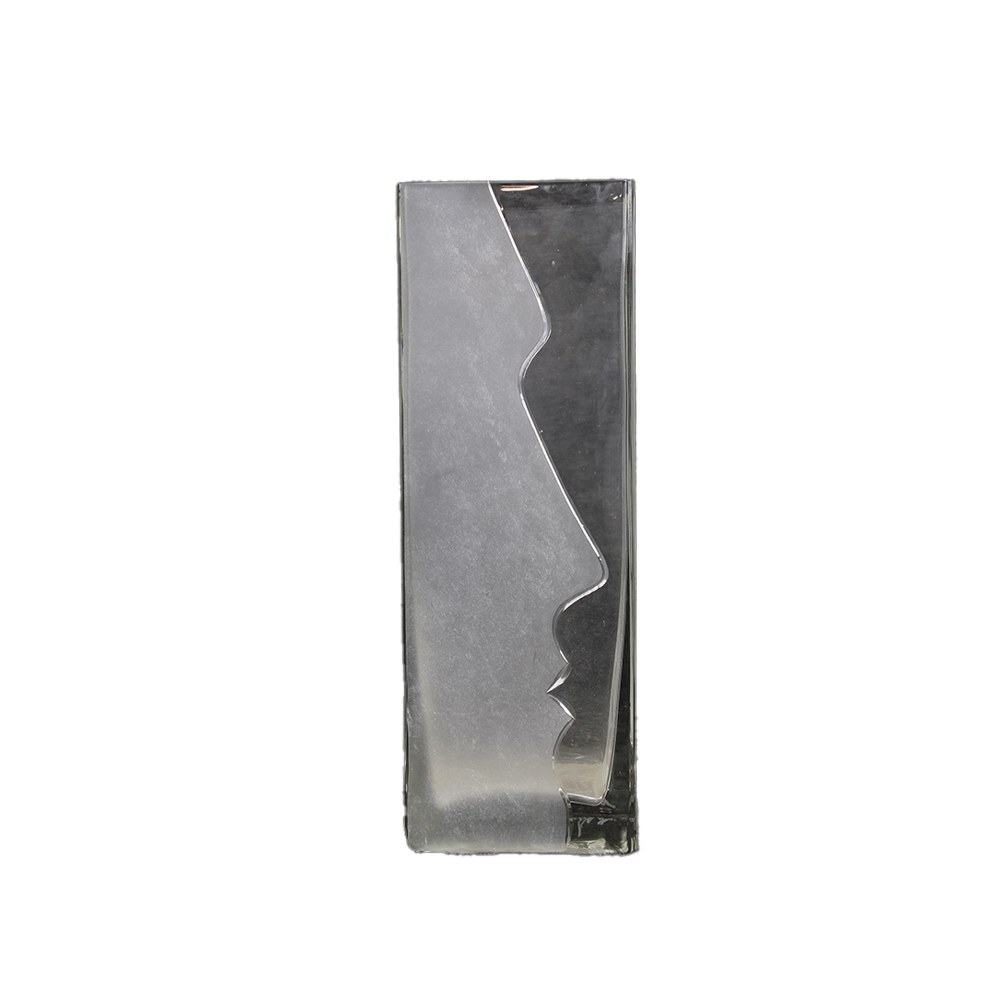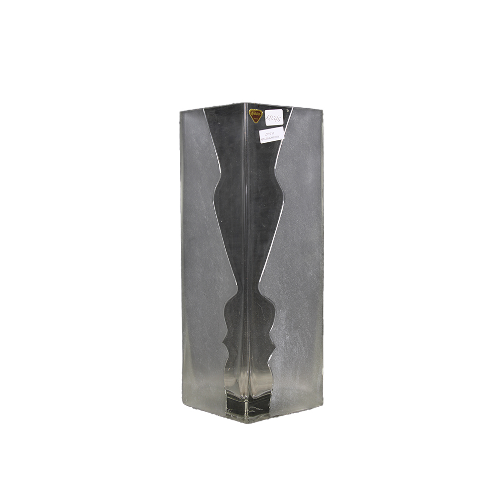 GRANDE VASO in cristallo lucido e satinato raffigurante due profili, il vaso si presenta in ottime condizioni periodo stimato anni 70 h cm 35 x 12 x 12