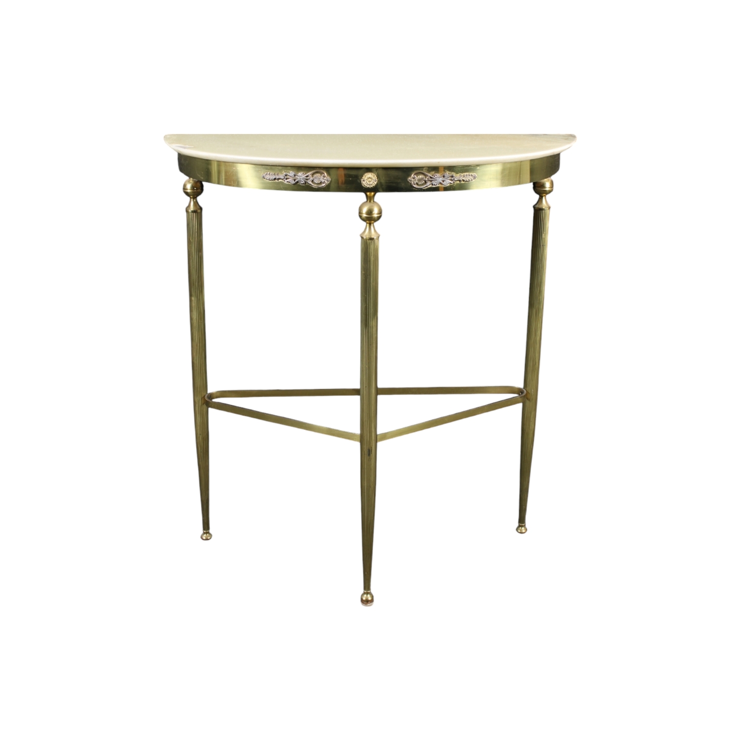 CONSOLLE in ottone con base in marmo produzione italiana anni 50, usure del tempo e difetti h cm 85 x 76 x 30