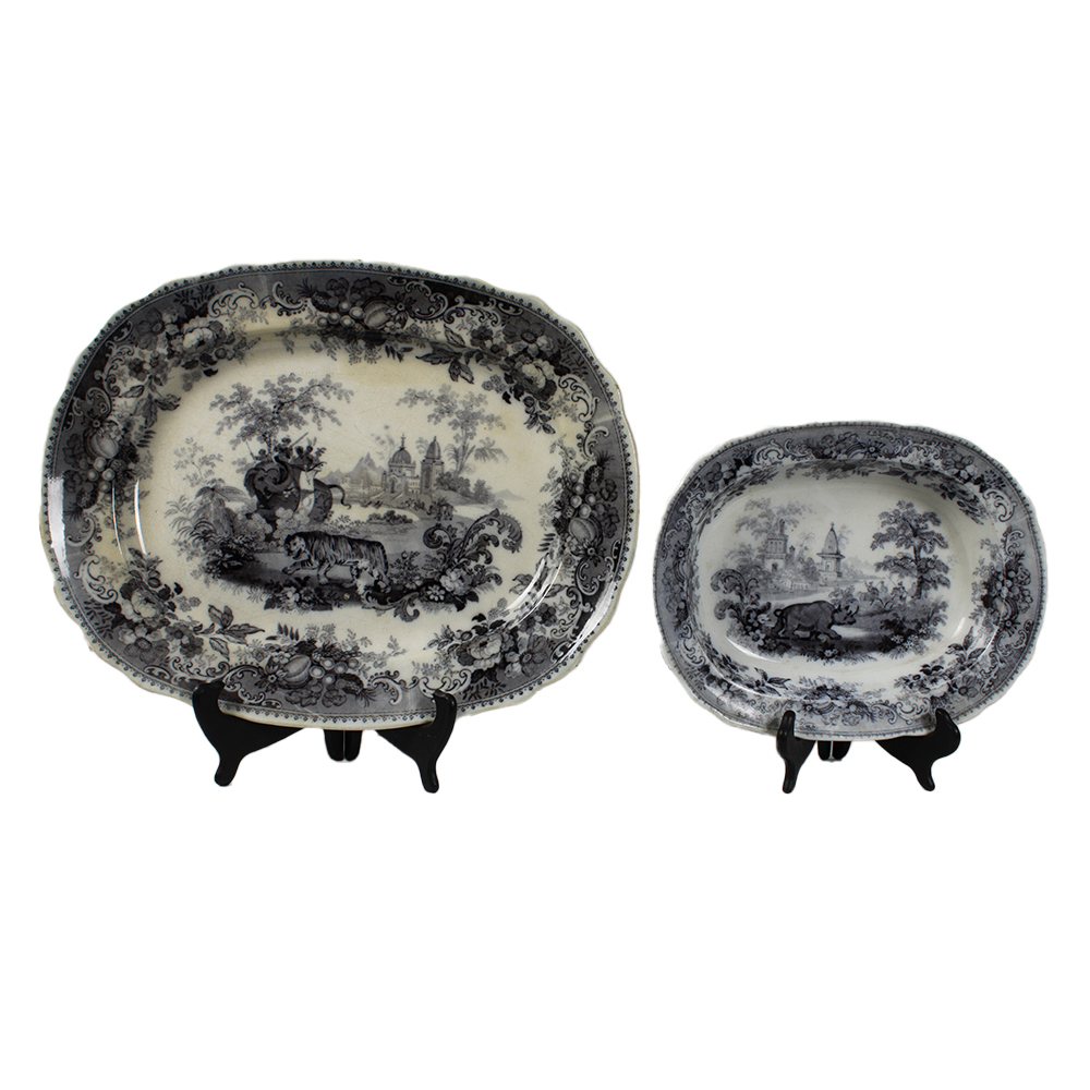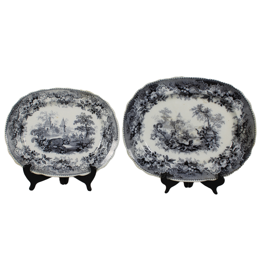 4 VASSOI in porcellana dipinta raffigurante paesaggi e scene di vita, manifattura Ceh Late Hackwood Inghilterra XIX secolo misure varie