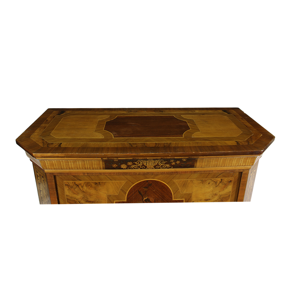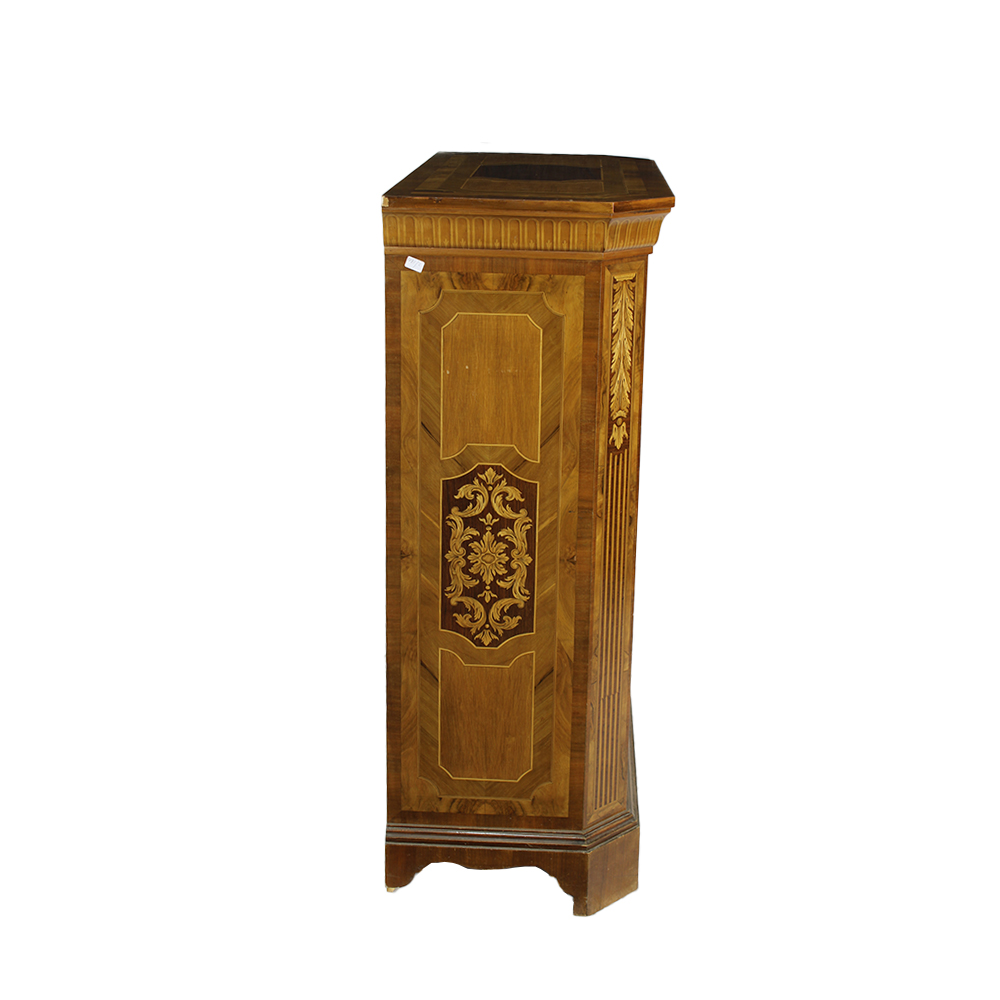 MOBILE CREDENZA AD UN ANTA in noce e radica di noce riccamente intagliata in varie essenze di legno su anta centrale raffigurante decorazioni floreali con vasi Francia XIX secolo h cm 120 x 44 x 94