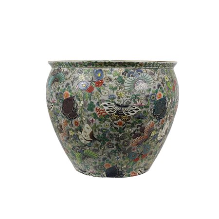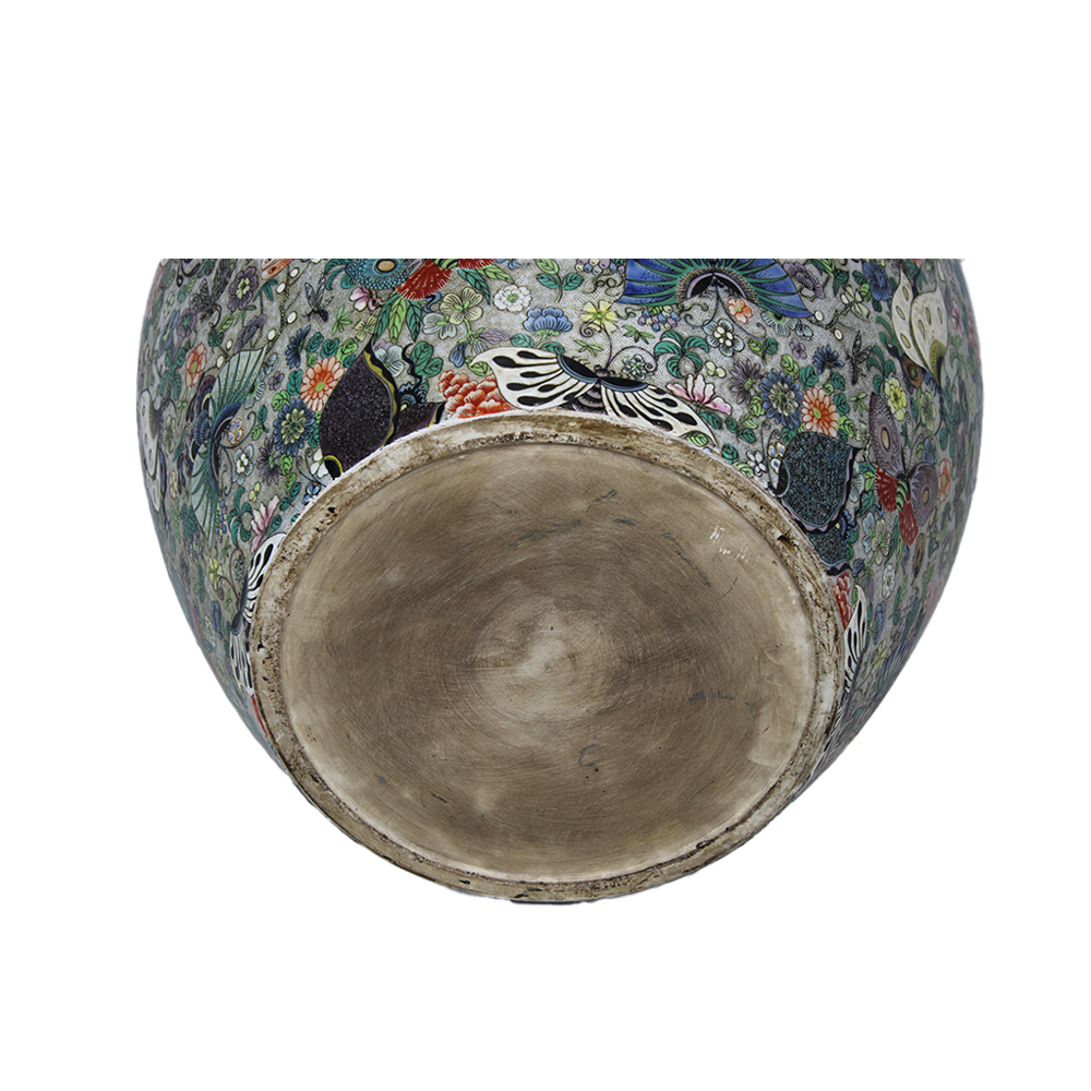 GRANDE POTICHE in porcellana dipinta manifattura orientale XX secolo h cm 44 x A 56