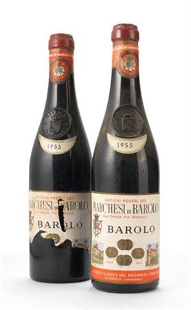 MARCHESI DI BAROLO Lotto di n. 2 bottiglie: Barolo, 1955 Rosso, lt. 0,75 1...