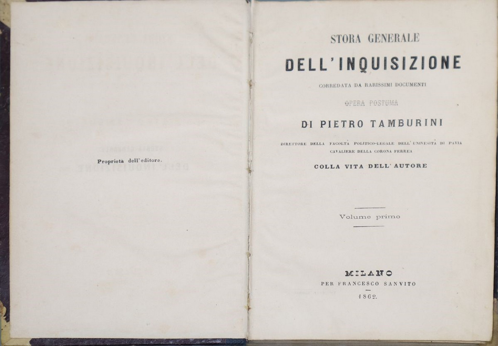 Pietro Tamburini (Brescia 1737 - Pavia 1827) - Storia generale dell'Inquisizione, 1862 Opera completa di quattro volumi, Milano. Presenti fioriture