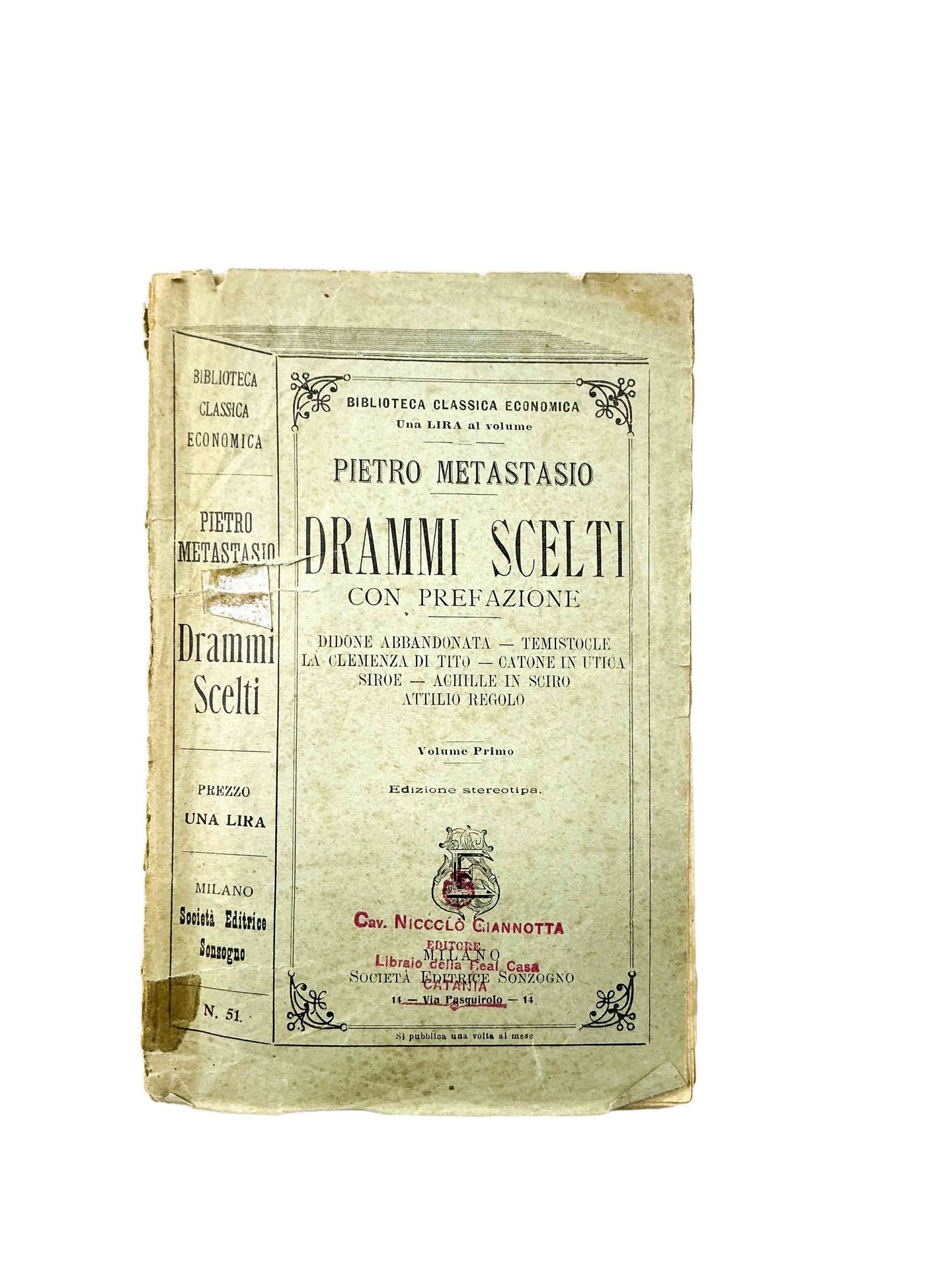 Pietro Metastasio (Roma 1698 - Vienna 1782) - Drammi scelti con prefazione h cm 19X12 Biblioteca classica economica, volume primo, edizione stereotipe, Società editrice Sonzogno n°51.
