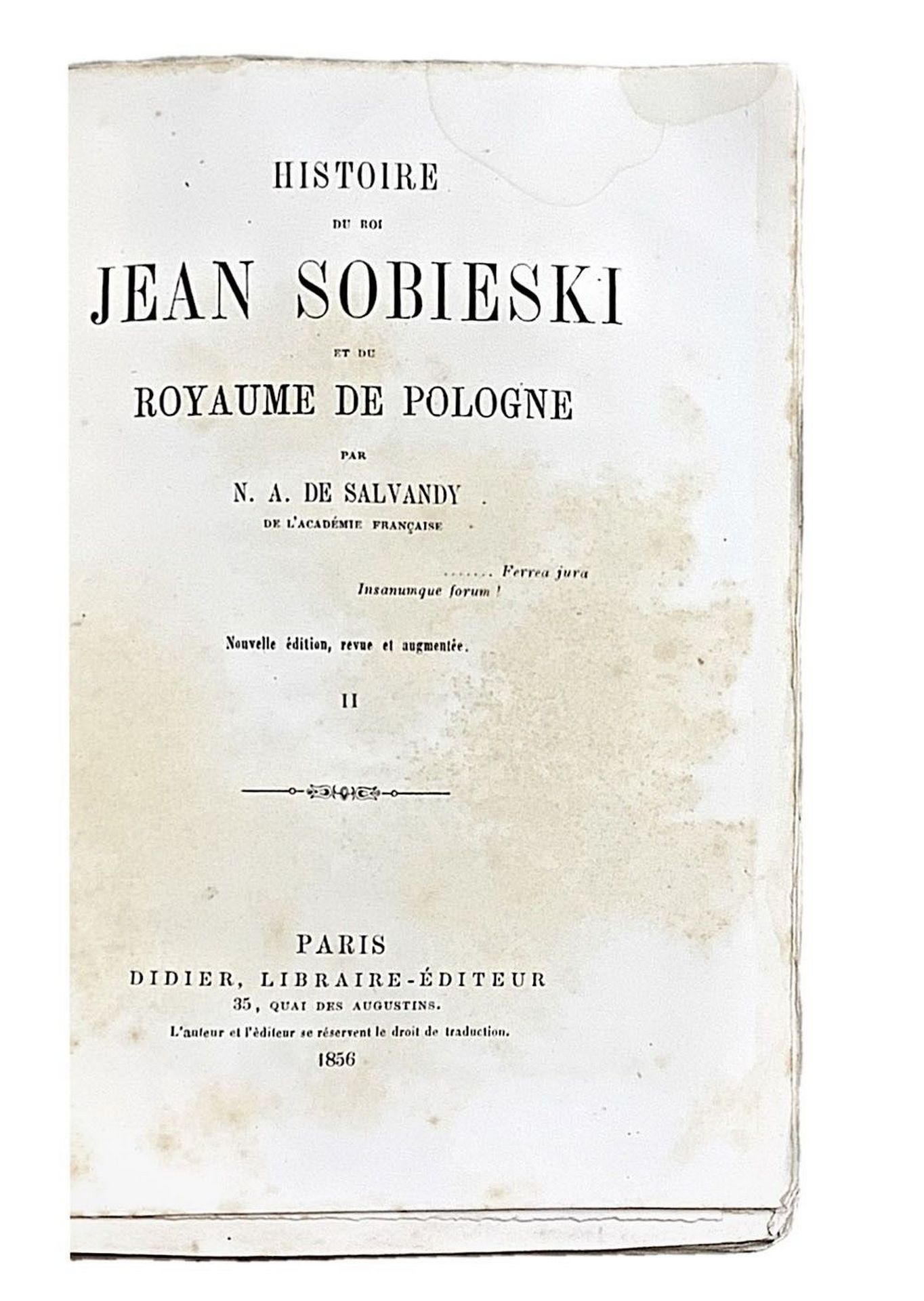 Narcise-Achille de Salvandy (Condom 1795 - Graveron-Sémerville 1856) - Histoire du roi Jean Sobieski et du royaume de Pologne, 1856 Parigi, Didier editore, 35 quai des Augustins. Presenti fioriture, sfilacciature ed abrasioni.