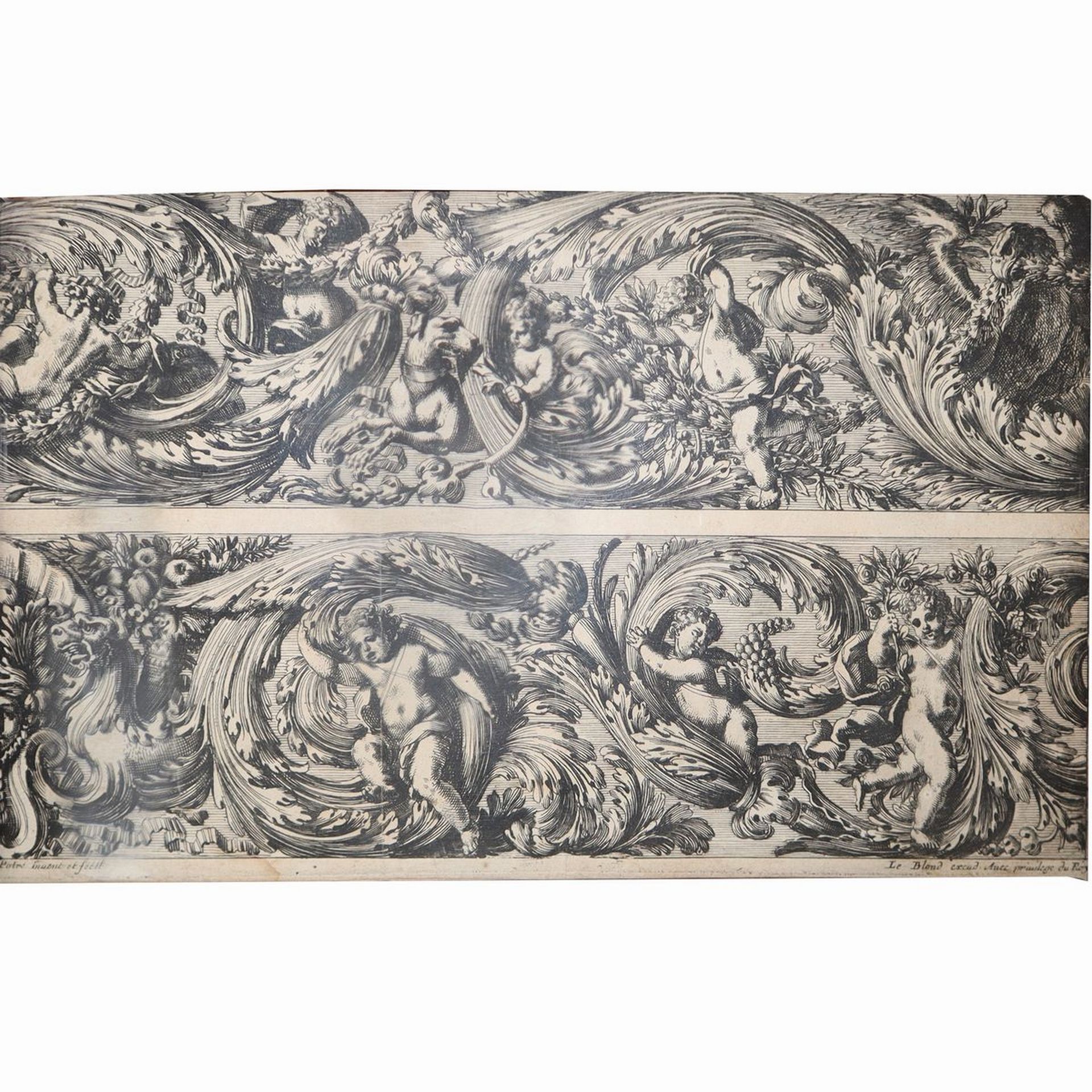 Jean Le Pautre (Parigi 1618 - Parigi 1682) - Festoni di fiori e frutta con putti H mm 195 x 310 Incisione all'acquaforte