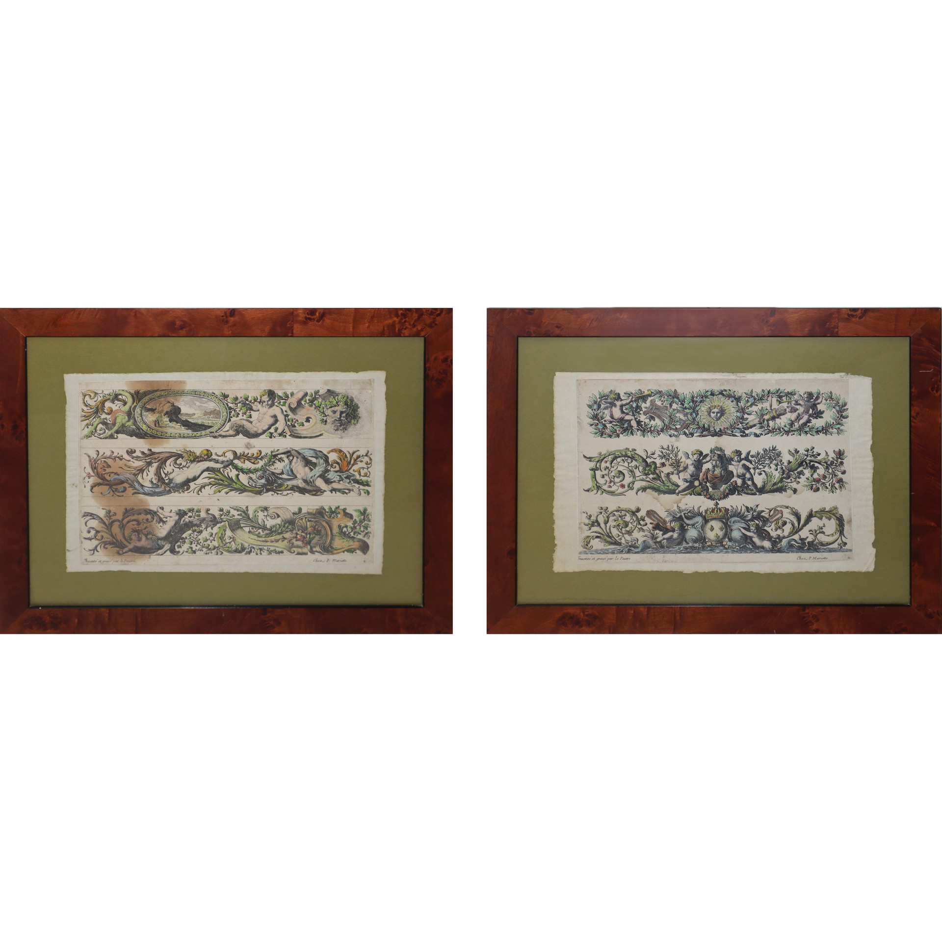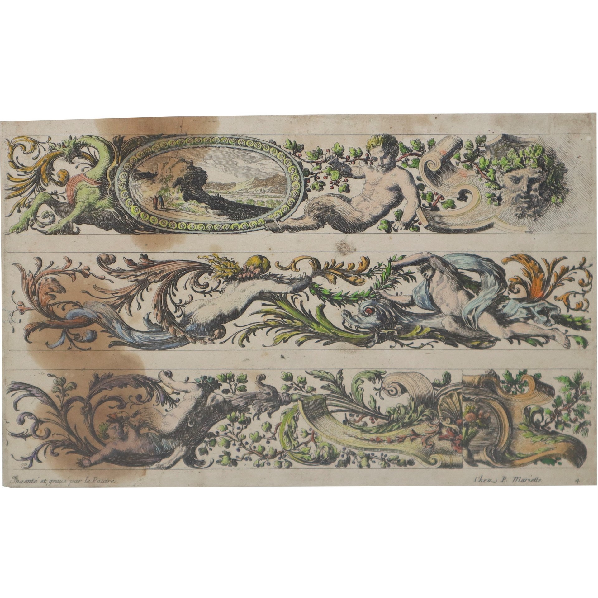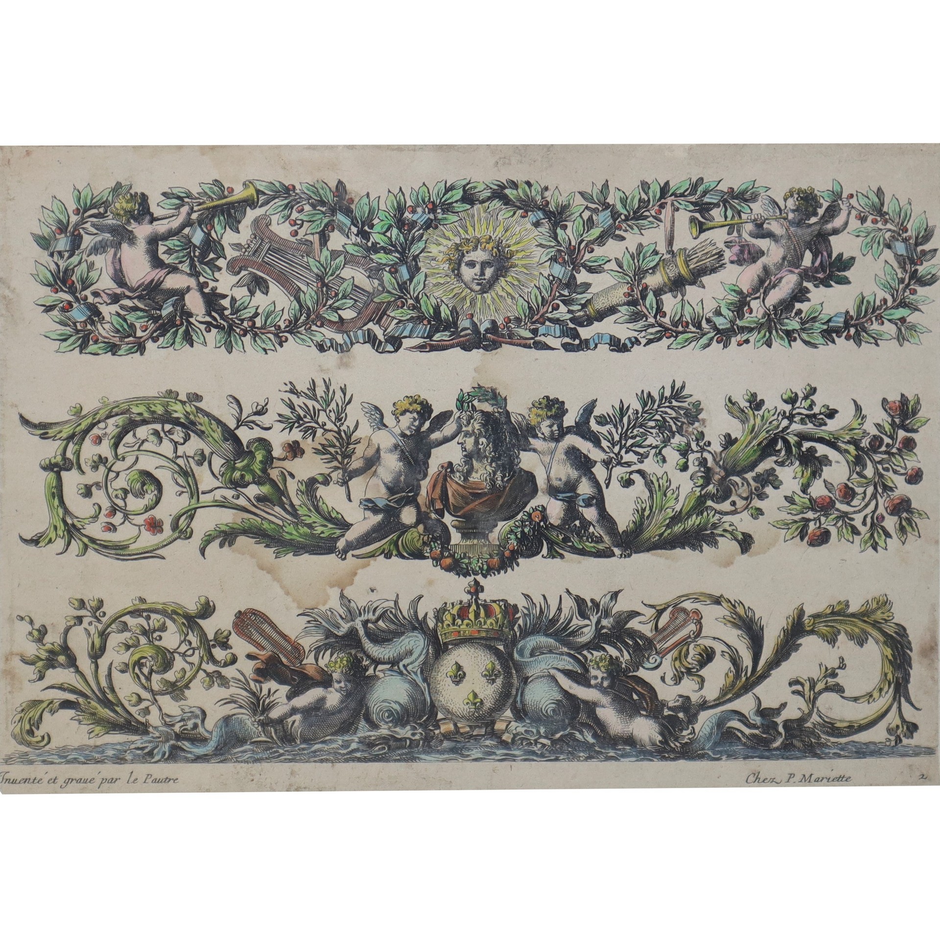 Jean Le Pautre (Parigi 1618 - Parigi 1682) - Coppia di incisioni raffiguranti festoni con Putti, Fiori, Delfini