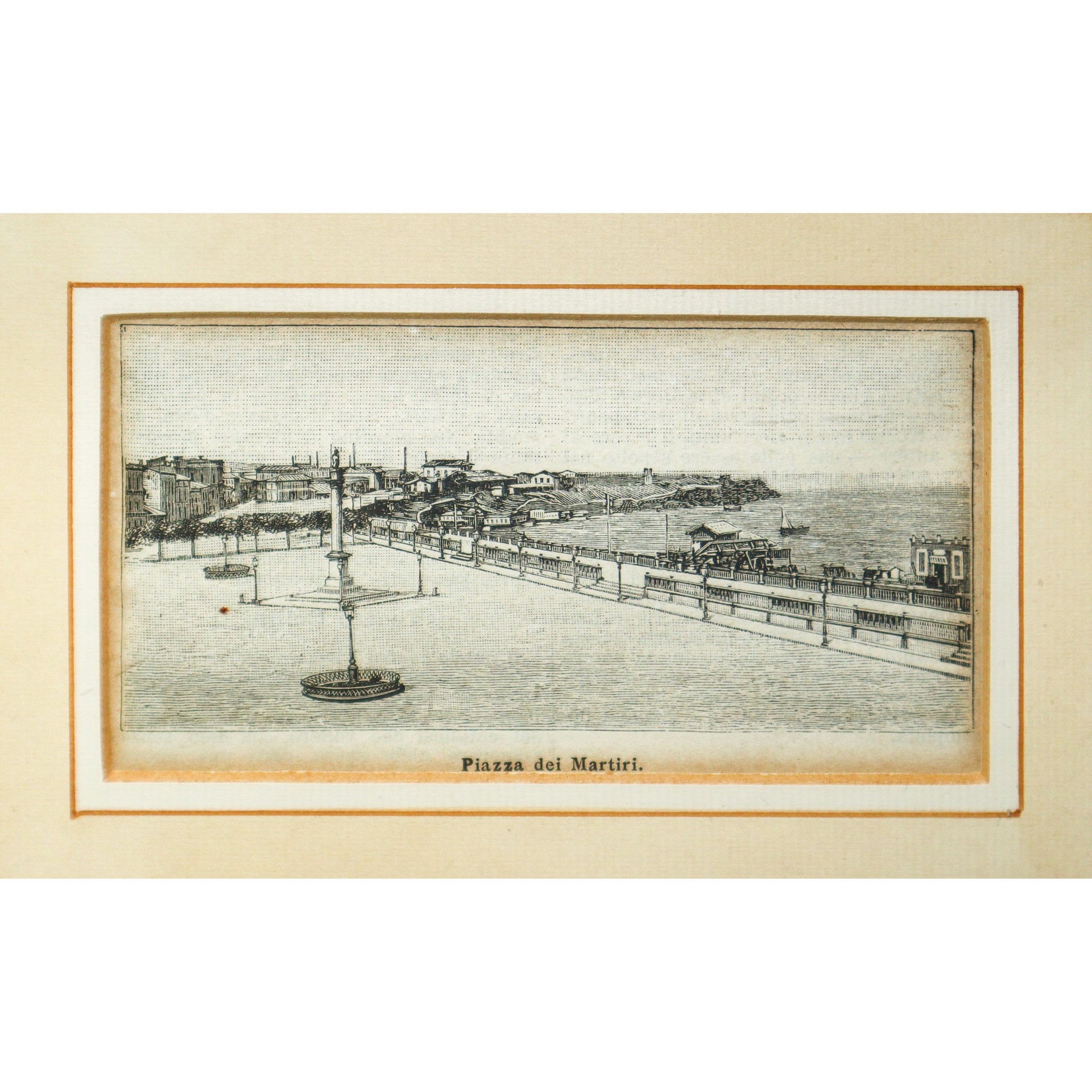 Piazza dei Martiri della città di Catania, incisione, 19th century h cm 7X13 in cornice 32,5X37 Incisione