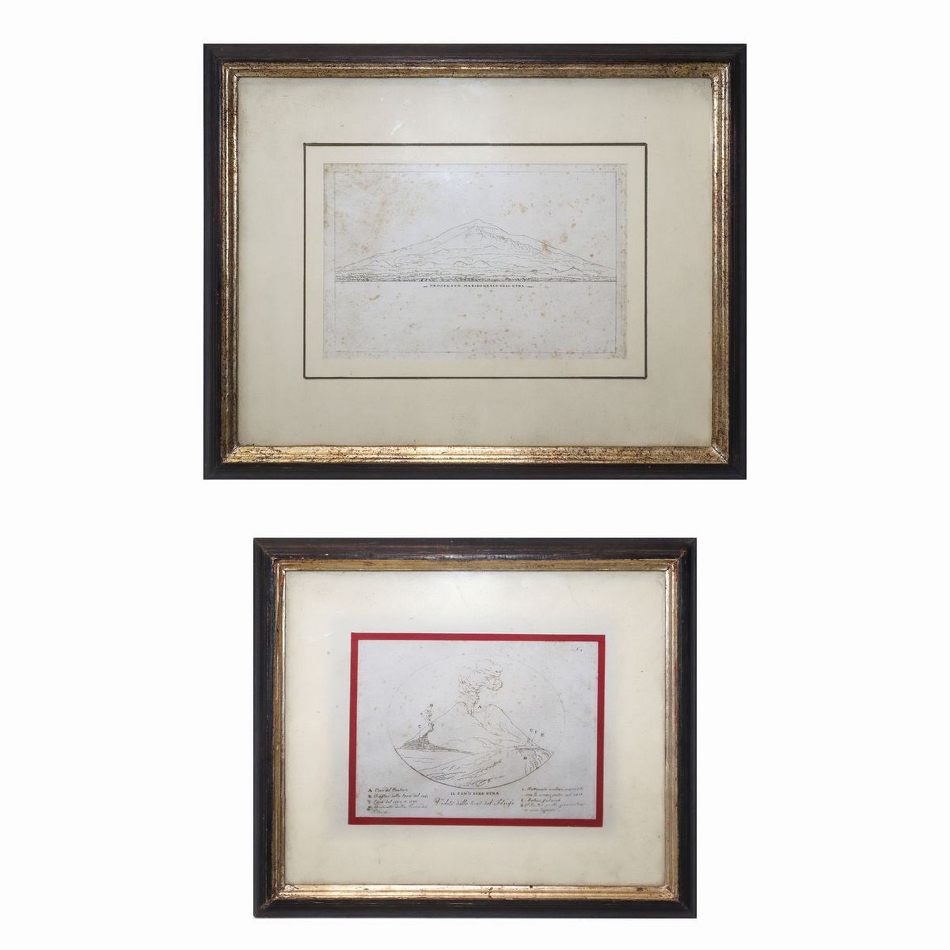 Coppia di incisioni raffiguranti cono del vulcano ed il prospetto meridionale , 20th century
