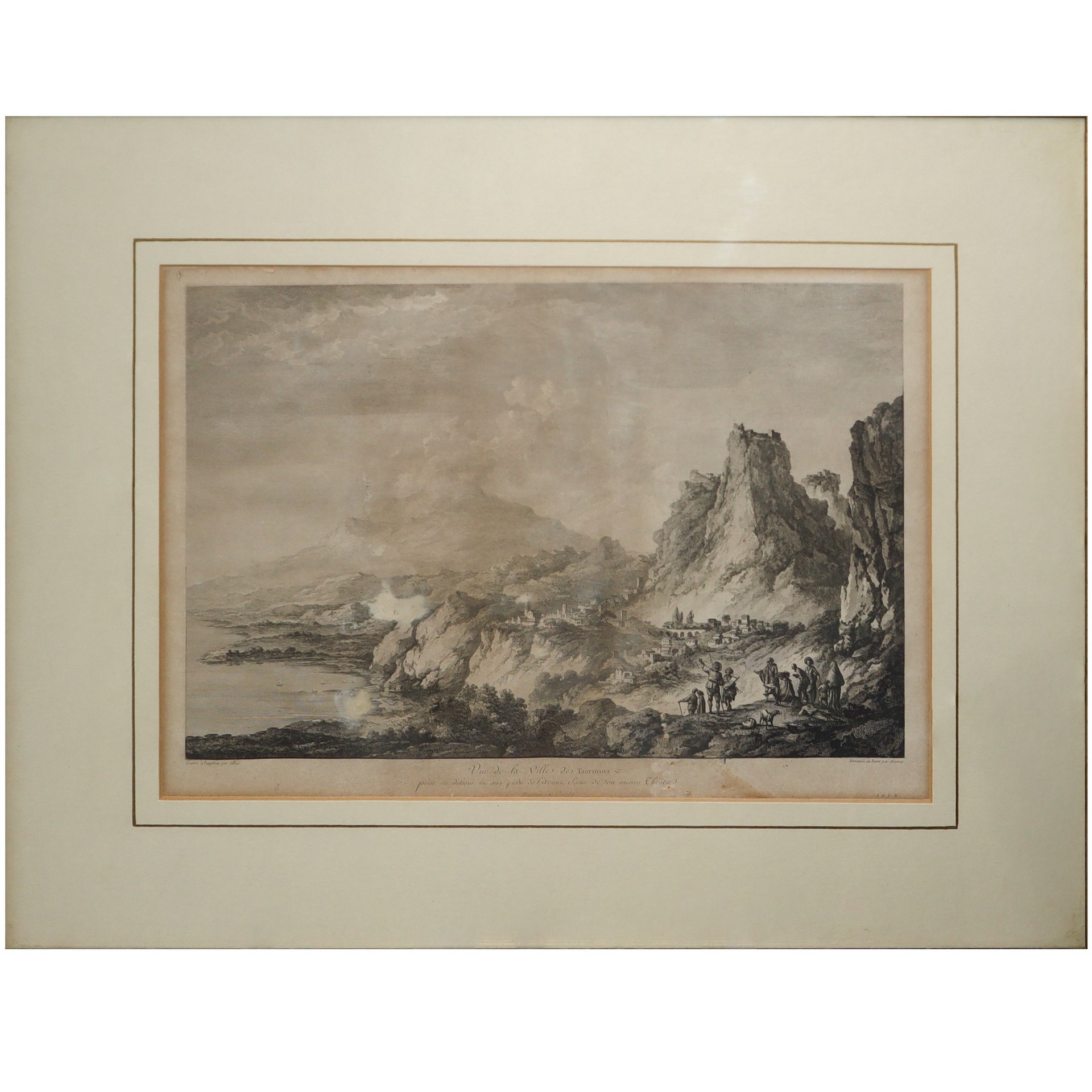 Saint-Non - Vista di Taormina con Etna incisione tratta dal "Voyage pittoresque des isles de Sicile, de Malte et de Lipari", late 18th century