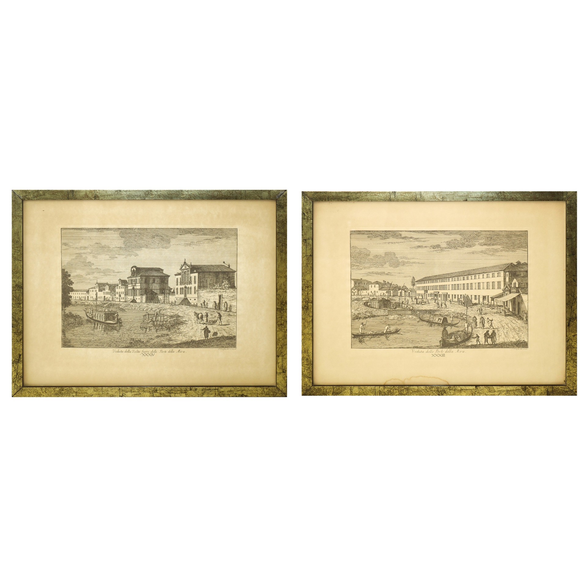 Coppia di incisioni di Veduta della Porte della Mira n. 23 e Veduta fuori dalle Porte della Mira, 19th century H cm 39x50 Acquaforte