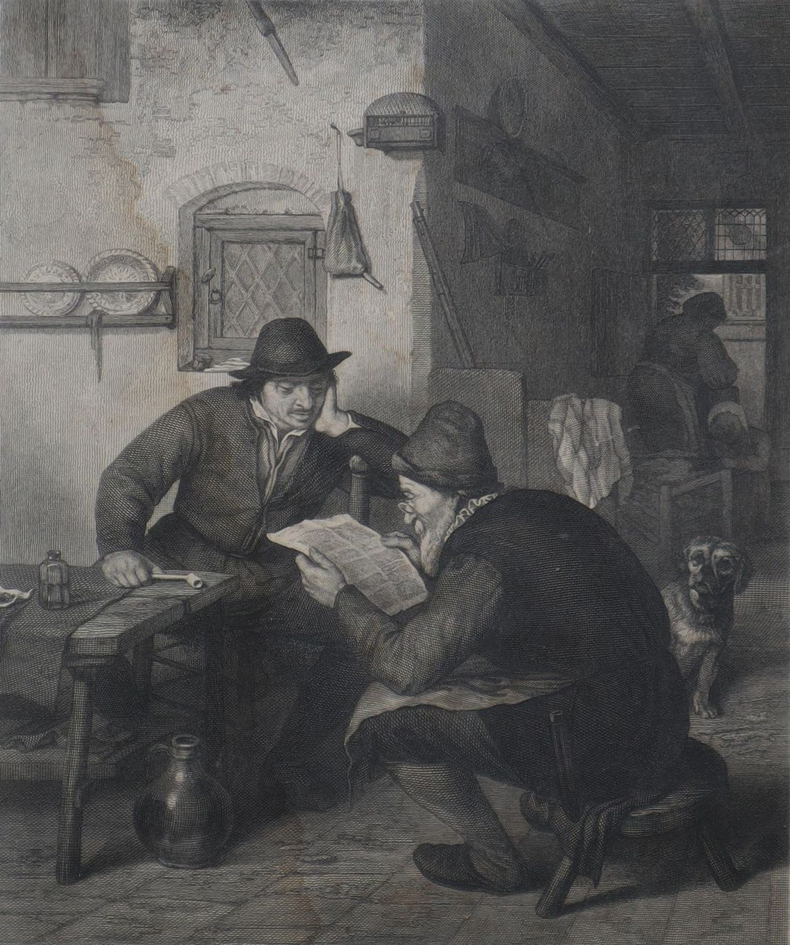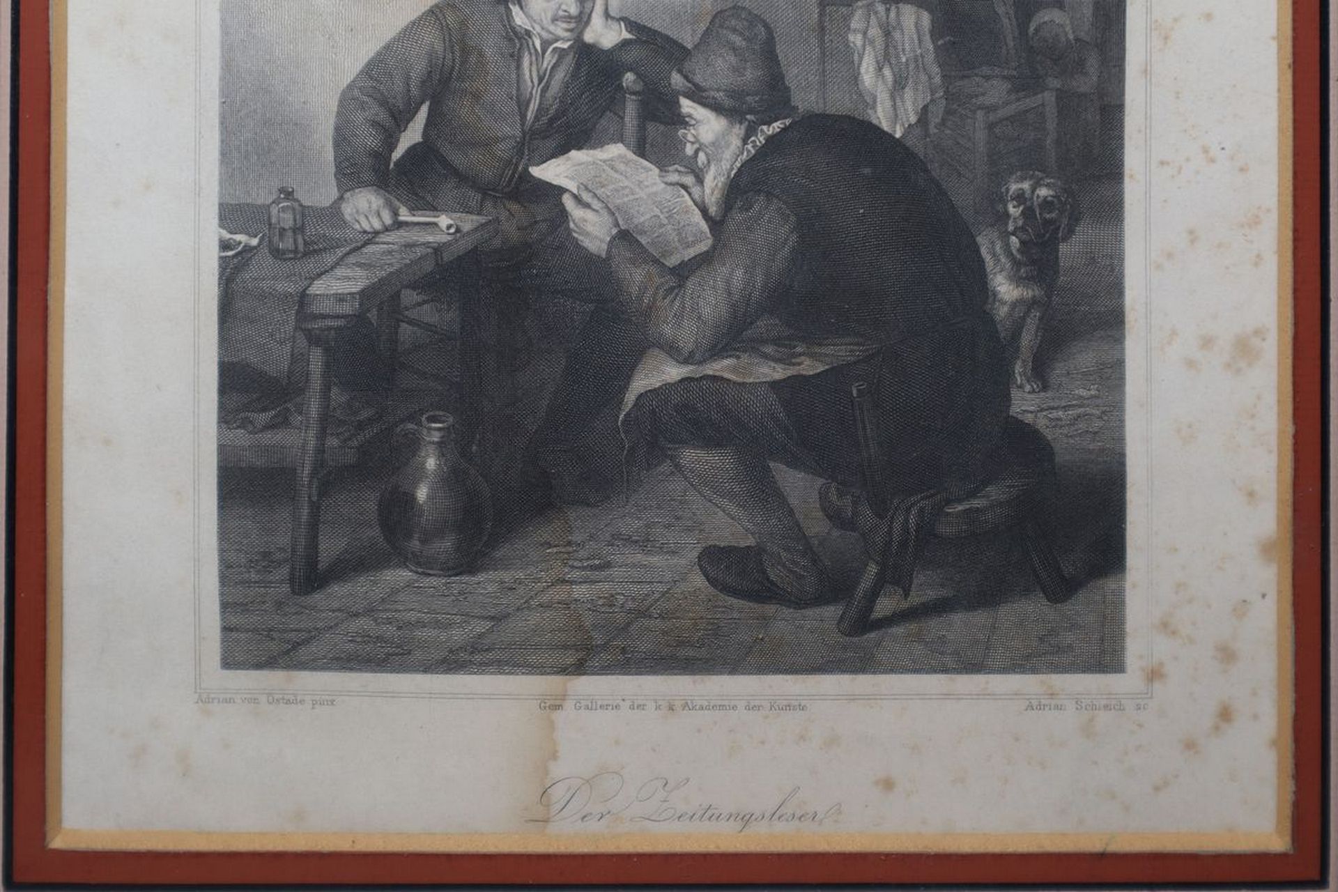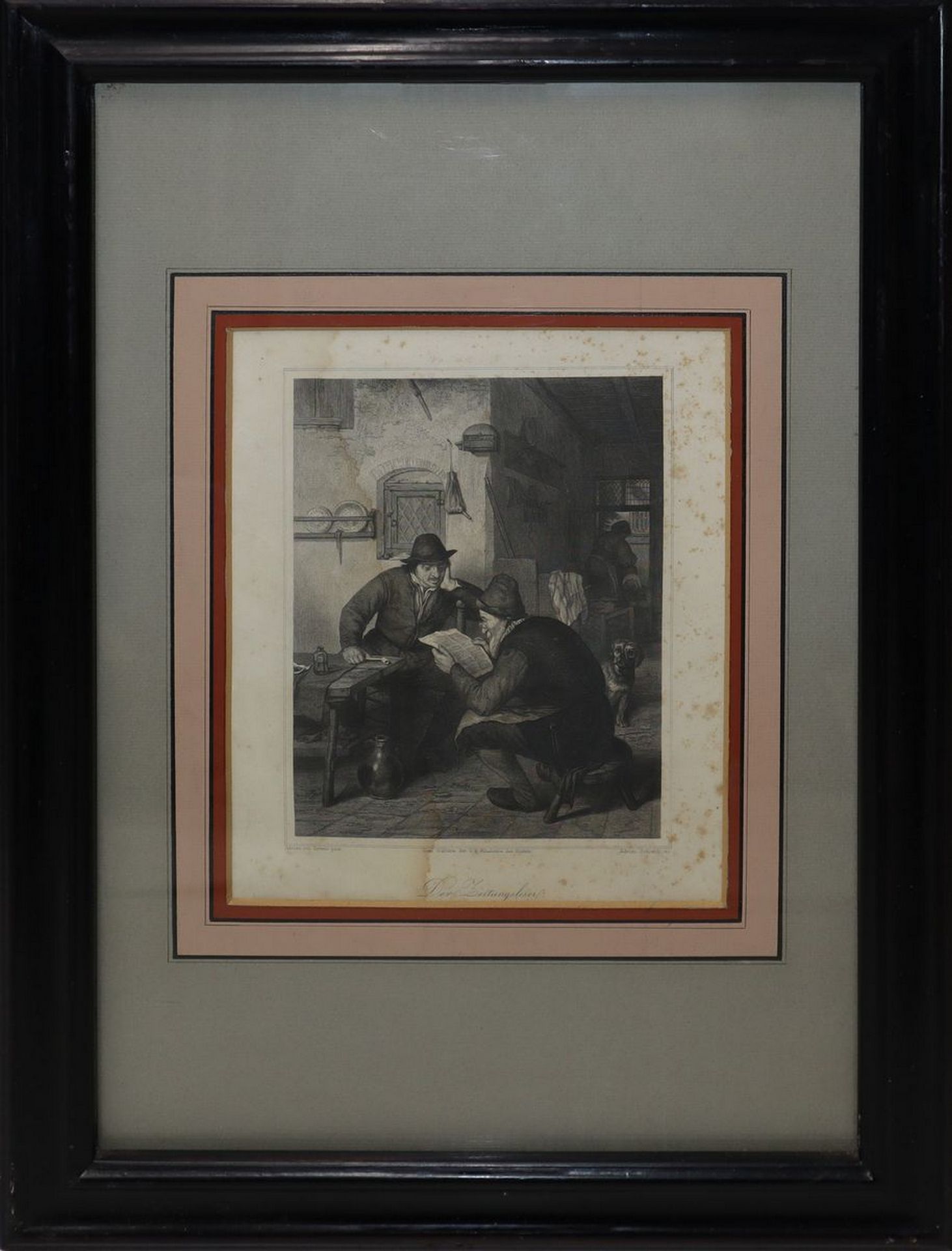 Adrian Schleich (Monaco di Baviera 1812 - Monaco di Baviera 1894) - Der Zeitungsleser, 19th Century cm 18 x cm 14, in cornice cm 47,5 x cm 35,5 Incisione ad acquaforte