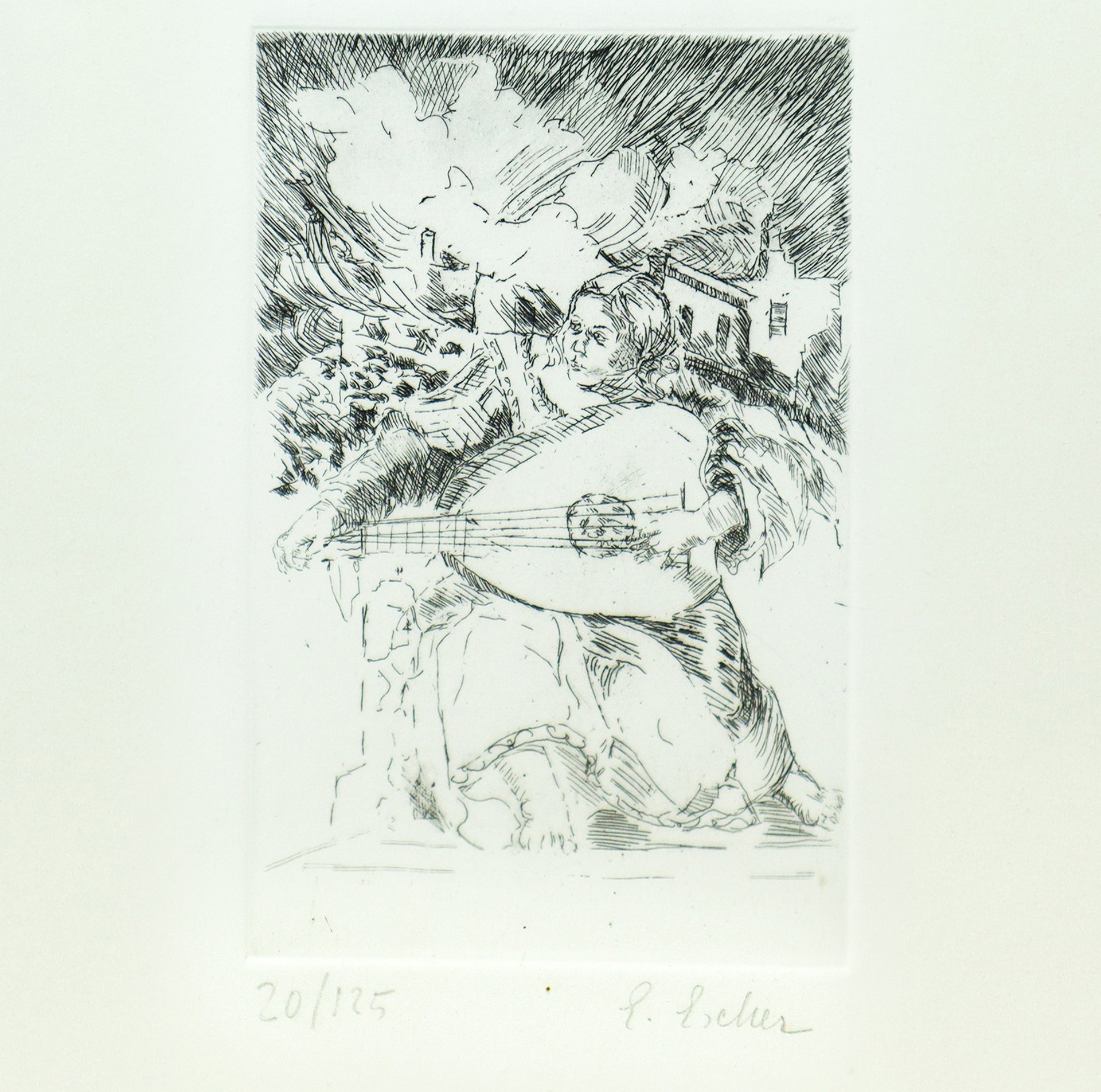 Emma Escher (1929 - 2005) - Angelo musicante h cm 34X30 Incisione