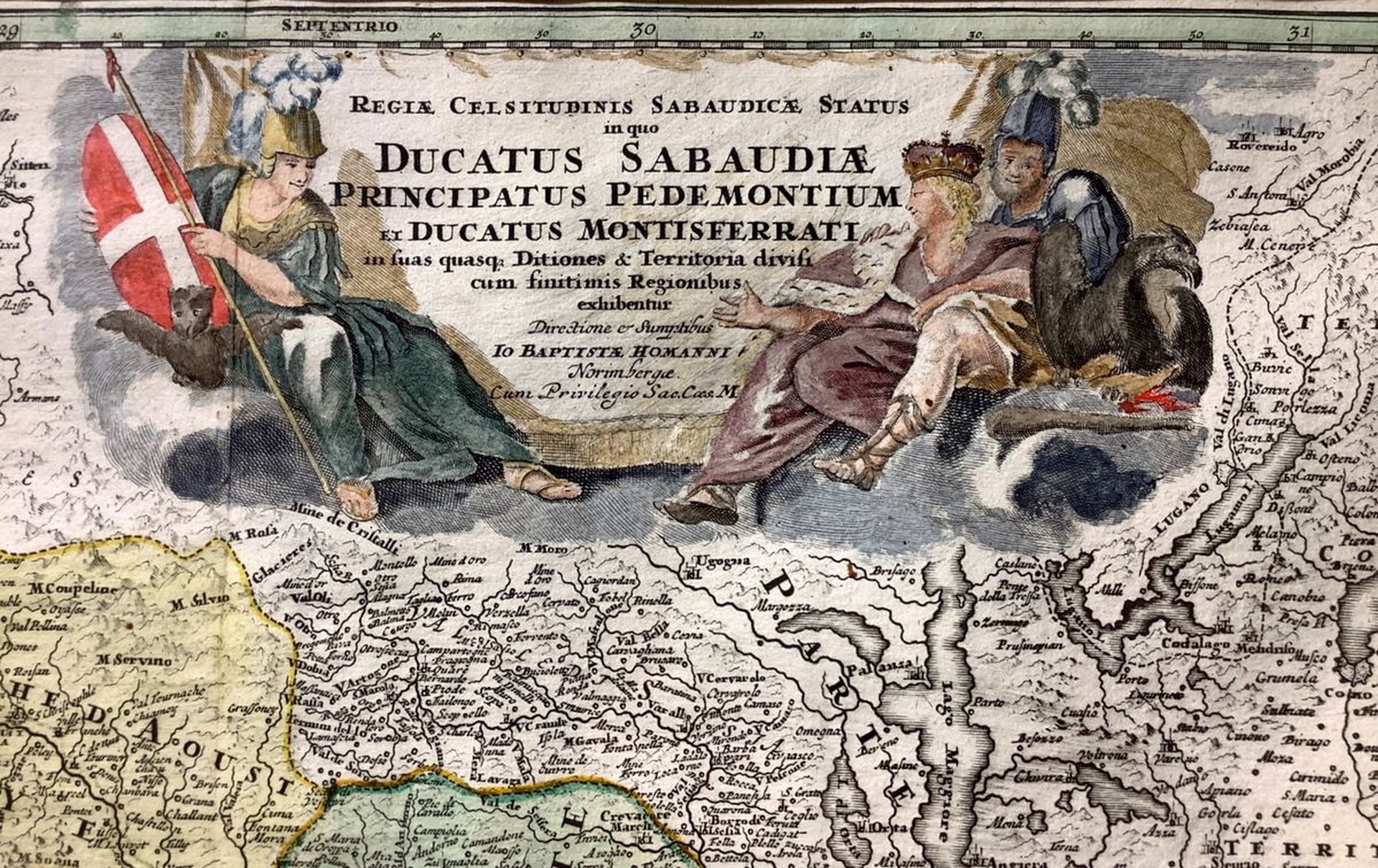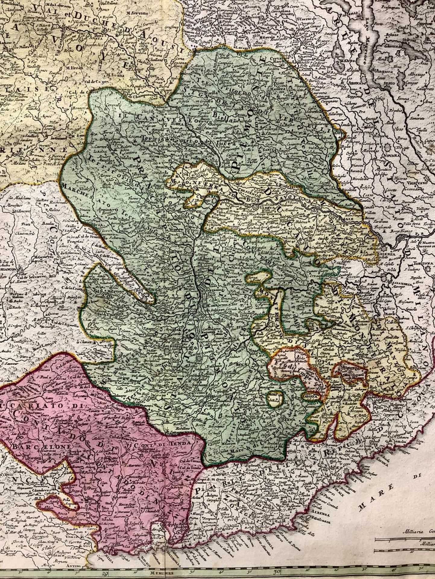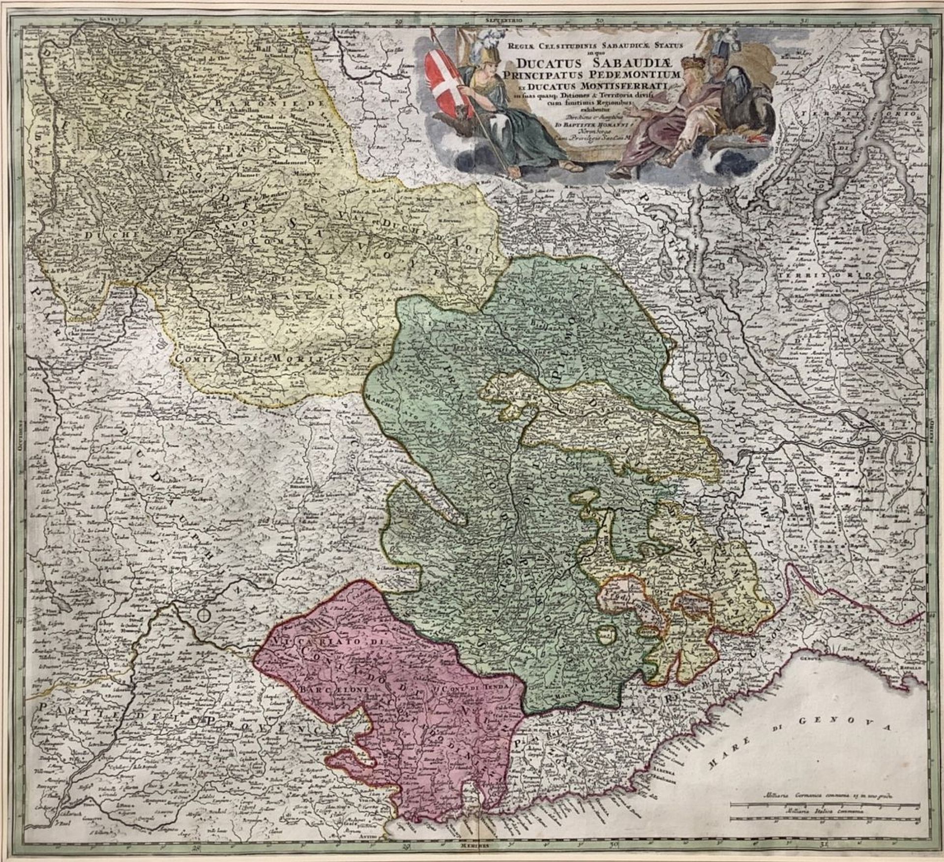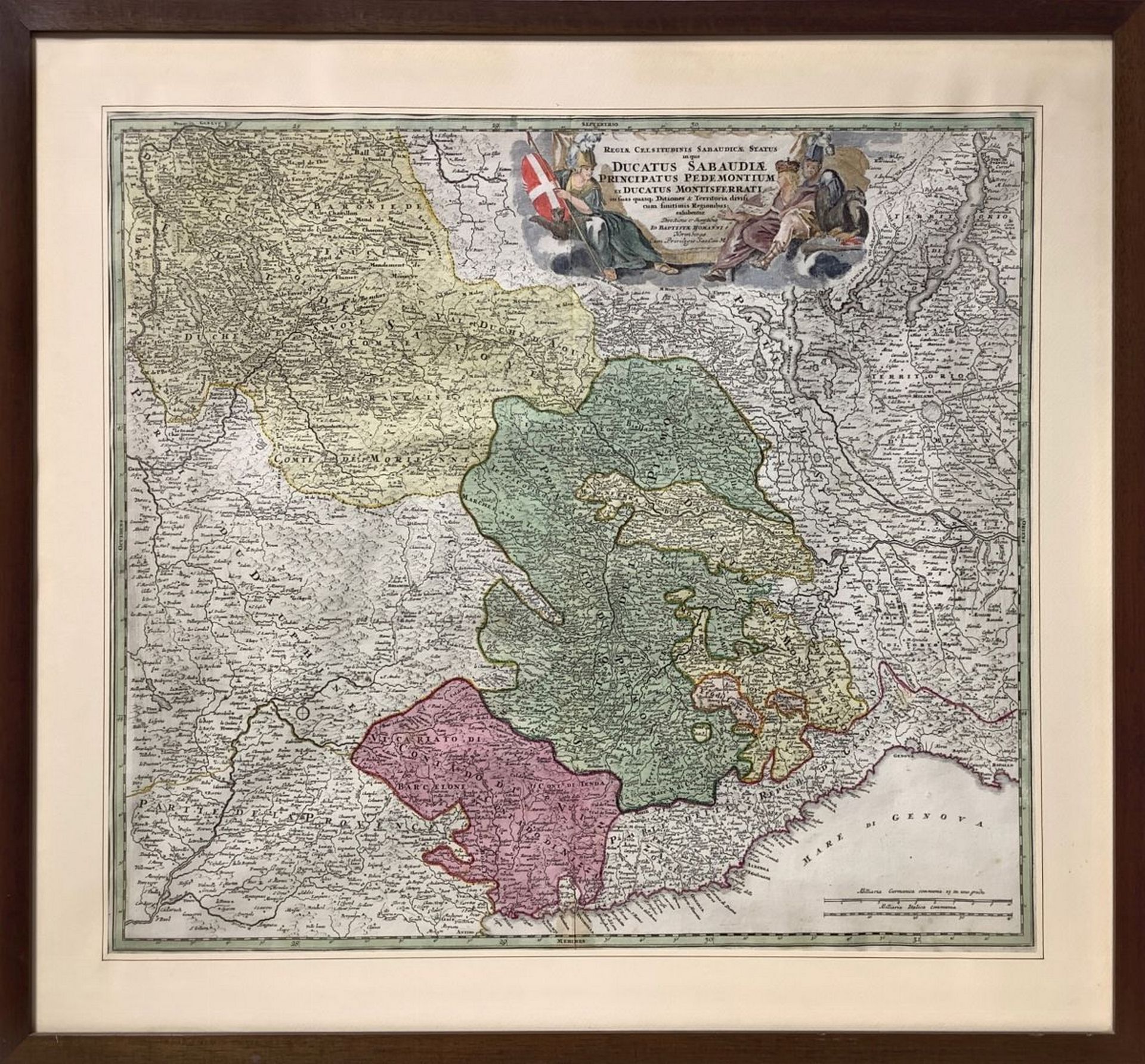 Ducatus Sabaudiae Principatus Pedemontium et Ducatus Montisferratis Mm 490x560, in cornice cm 63x70. incisione acquarellata