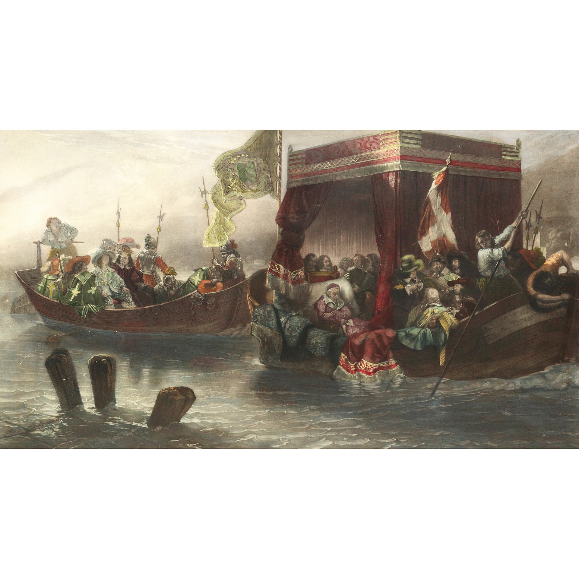 Richelieu, incisione a colori in cornice in legno dorata h cm 64,5X105 in cornice h cm 77X117 incisione a colori