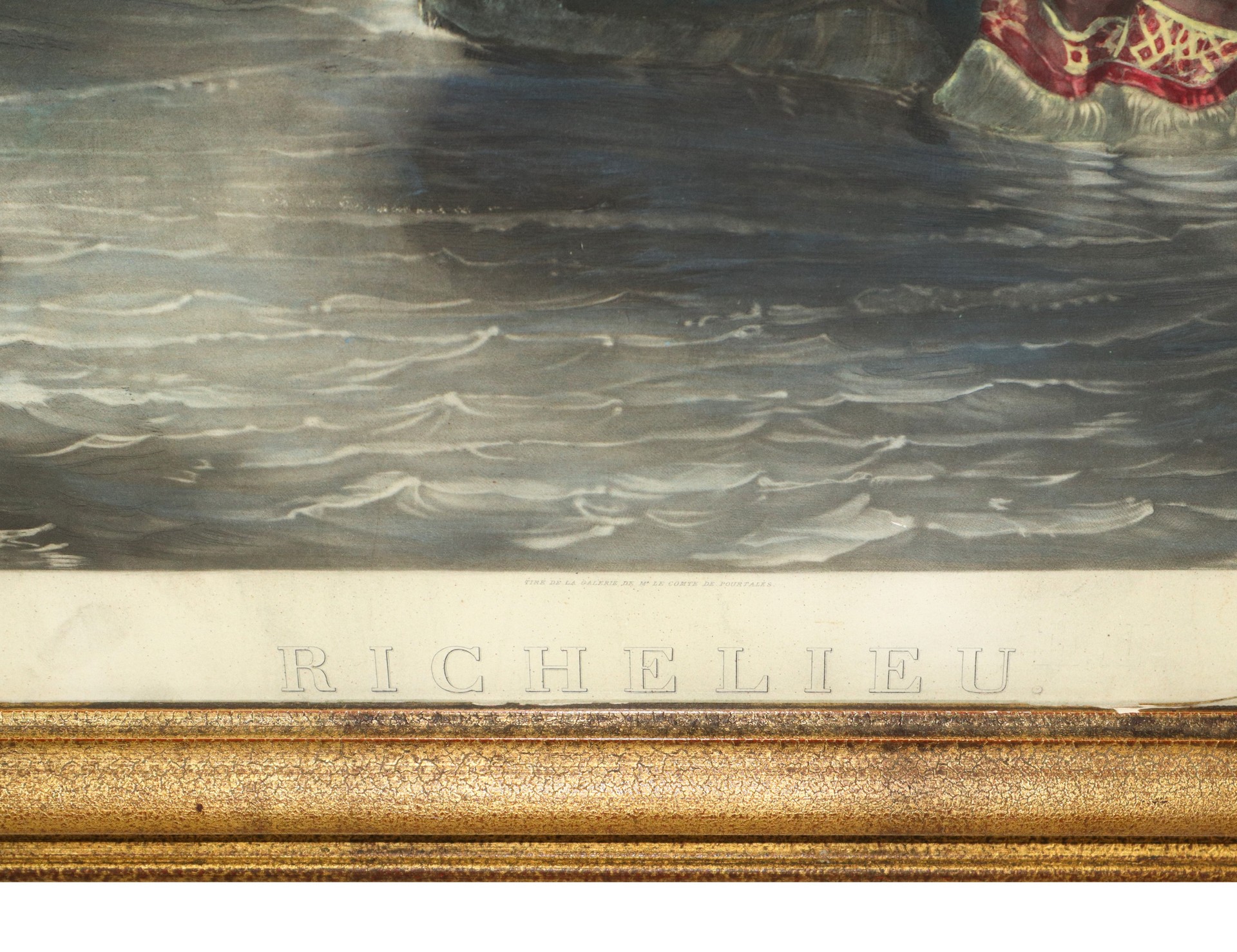 Richelieu, incisione a colori in cornice in legno dorata
