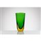 Vaso troncoconico a sezione ovale in vetro sommerso verde e ambra.