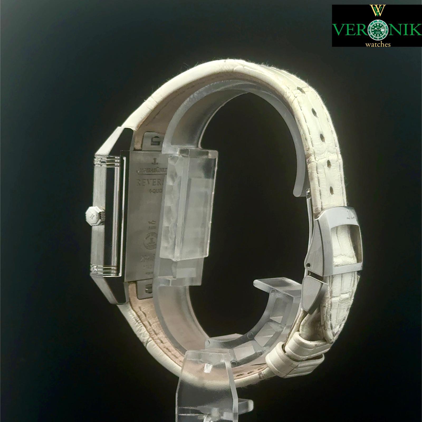 MARCHIO: Jaeger-LeCoultre MODELLO: Reverso Squadra Lady REFERENZA: 234.8.47 NUMERO SERIALE: 278XXX MATERIALE CASSA: Acciaio DATA DI ACQUISTO: 27/02/2015 DIAMETRO: 42mm x29mm BRACCIALE: Pelle Bianco MOVIMENTO: Quarzo COLORE QUADRANTE: Bianco MATERIALE VETRO: Vetro Zaffiro CORREDO: documenti originali Jaeger-LeCoultre, no box - COMMISSIONE D’ASTA 25%
