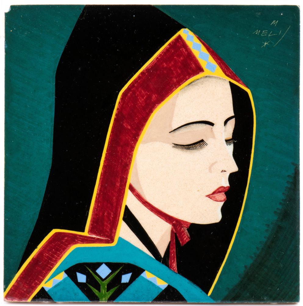 MELKIORRE MELIS (Bosa 1889 - Roma 1982), Mattonella con donna di Aritzo