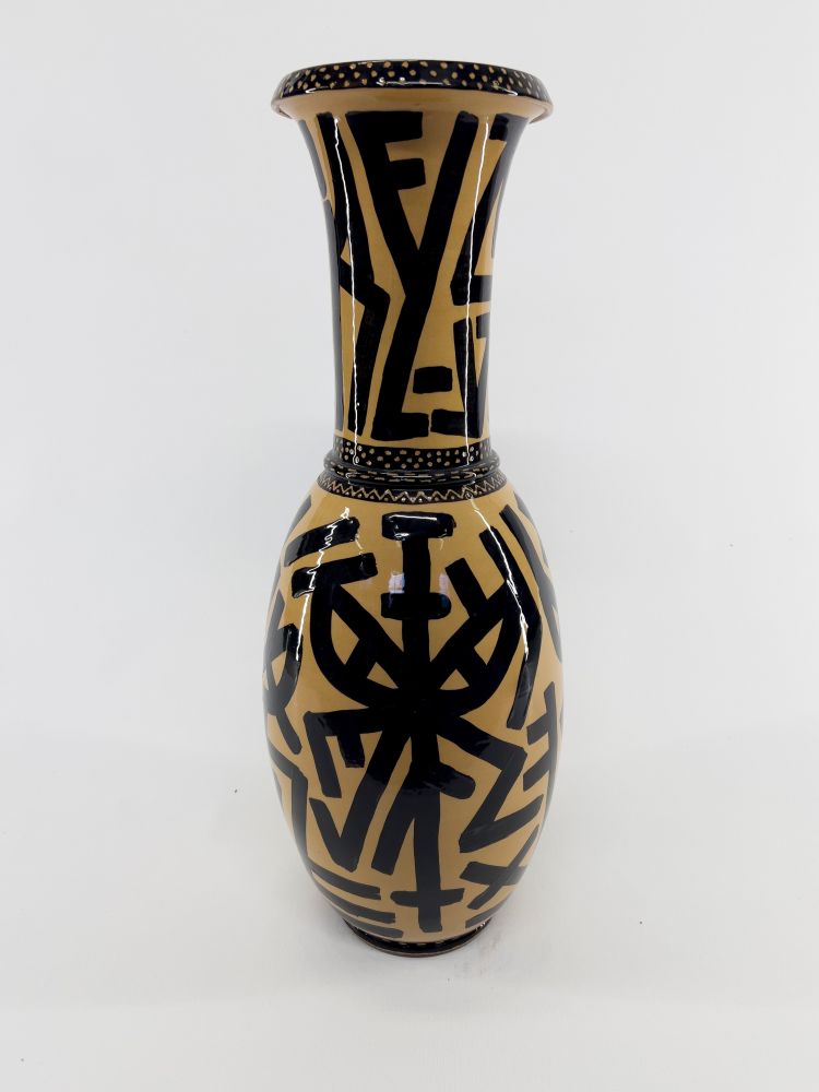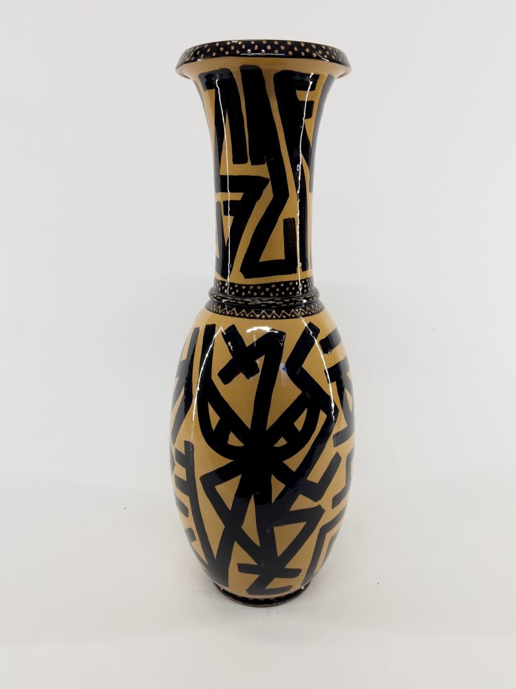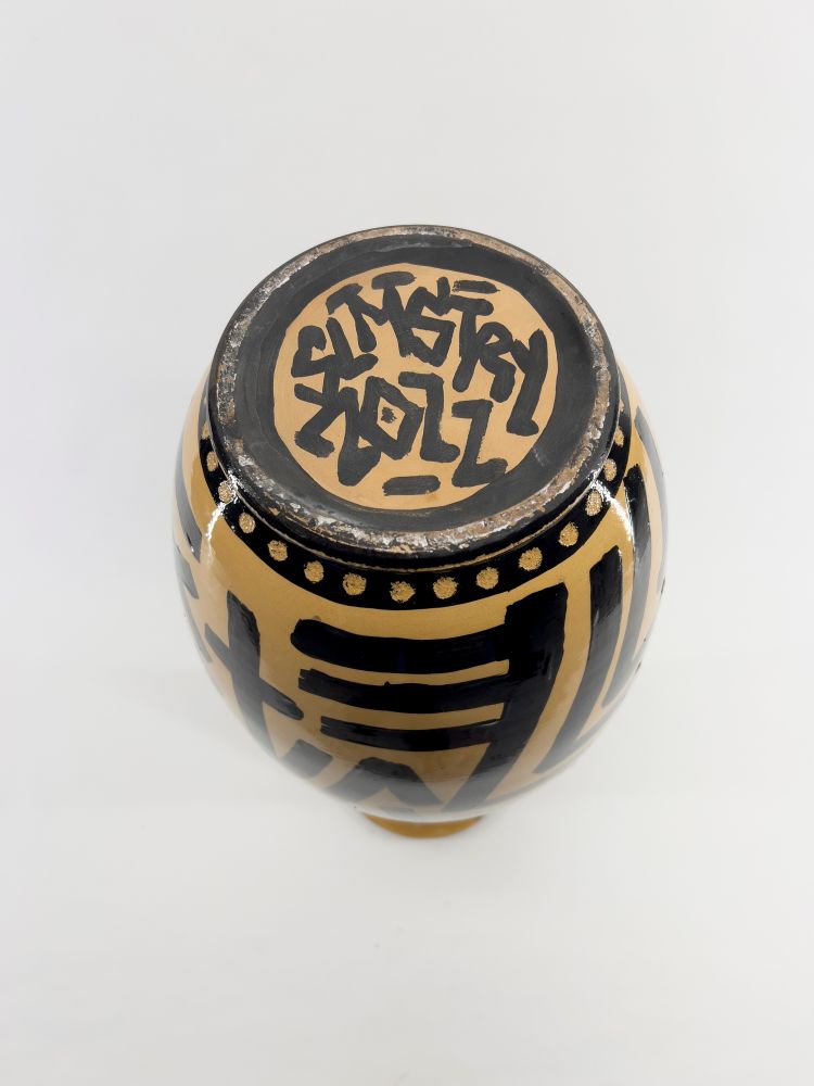 Vaso dipinto e inciso. In caso di aggiudicazione verrà prodotta una scatola unica in legno serigrafata a mano dall'artista