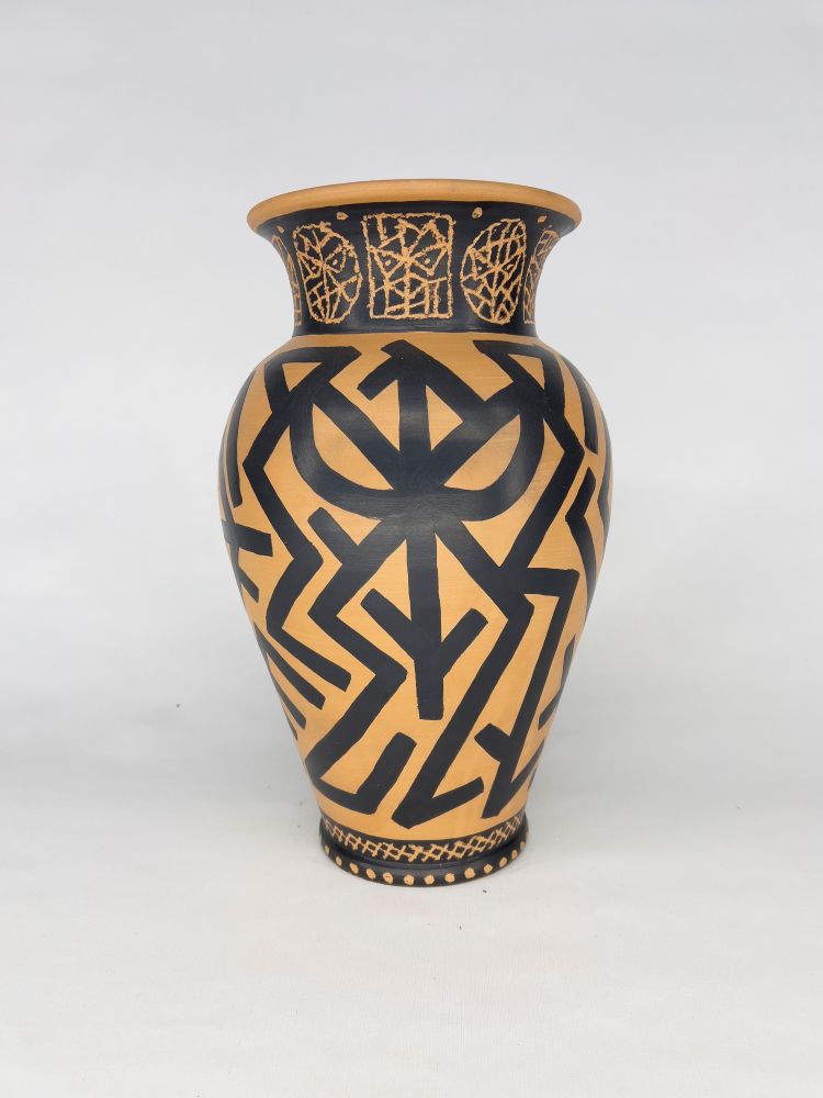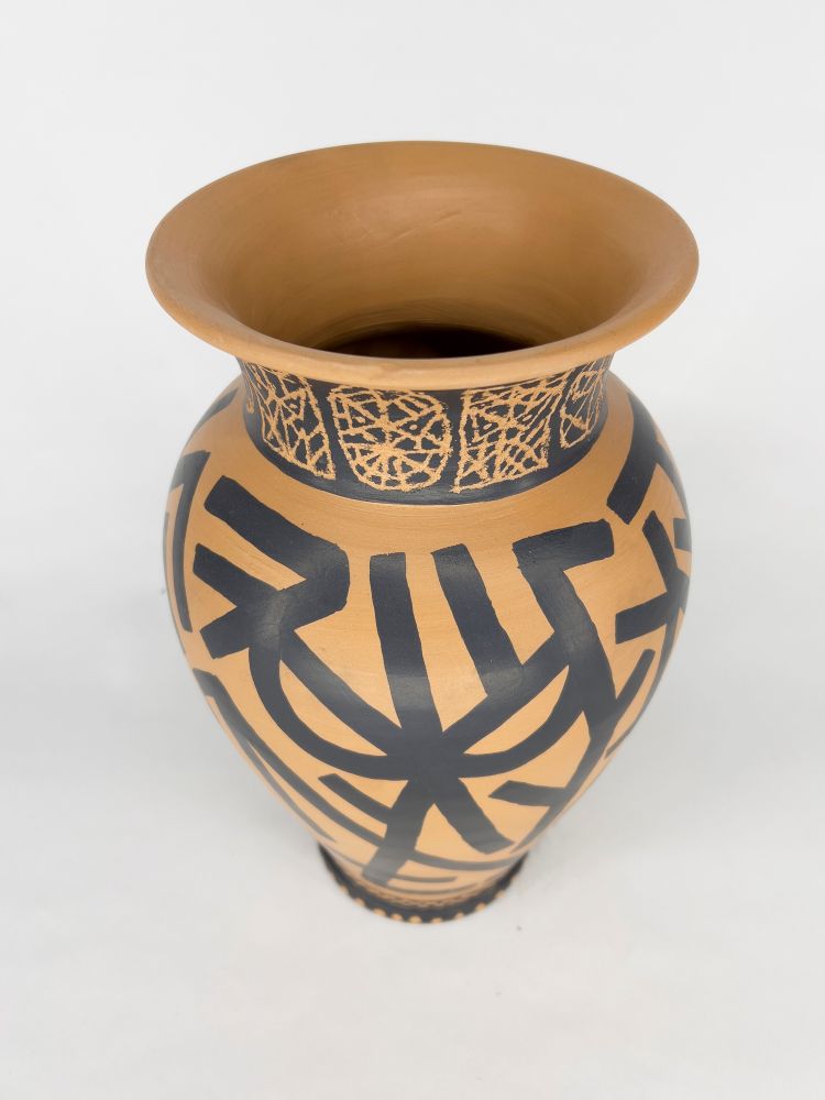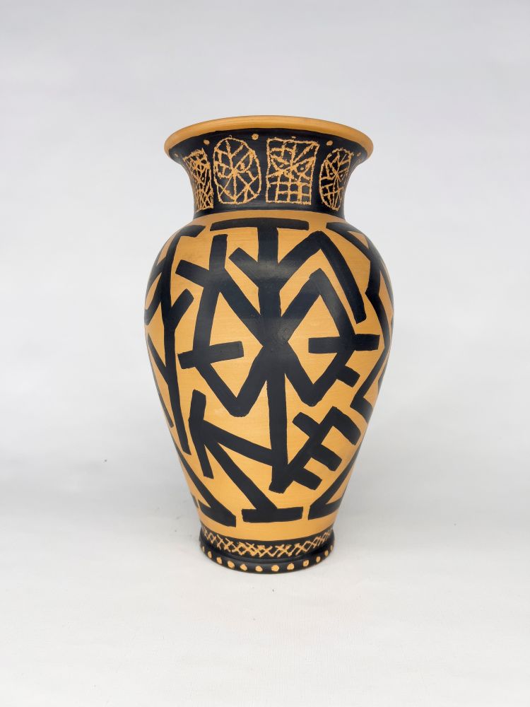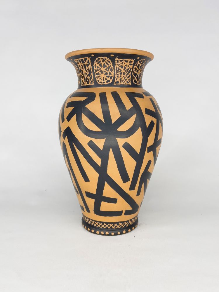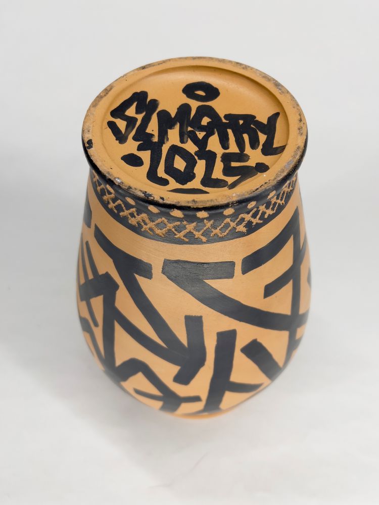 Vaso dipinto e inciso. In caso di aggiudicazione verrà prodotta una scatola unica in legno serigrafata a mano dall'artista