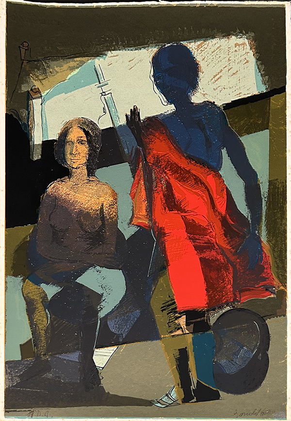 BOSCOLO NATTA, litografia su cartoncino, cm 70x50x0,5, kg 0,5. Al fronte: tiratura P.D.A in basso a sinistra, firma in basso a destra. Al verso: firma. L'opera presenta fioritura. Opera senza cornice