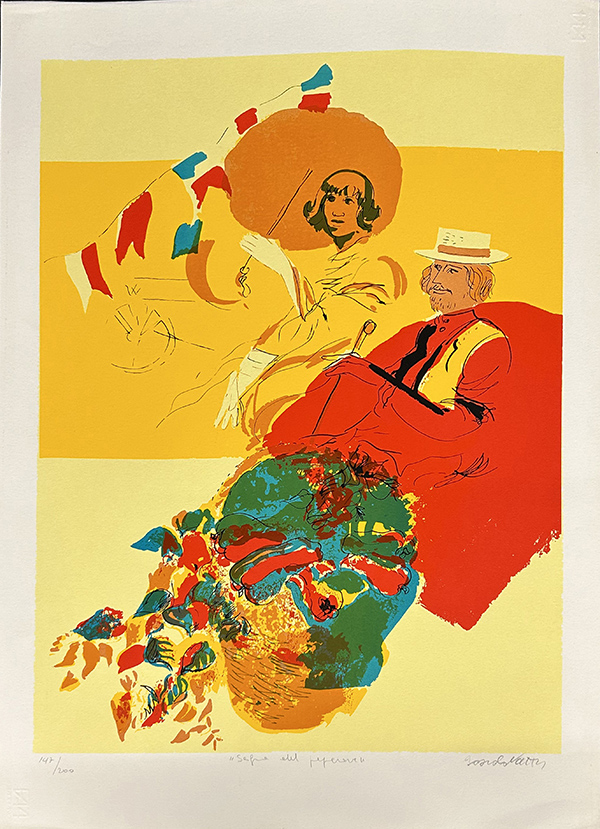 BOSCOLO NATTA, litografia su cartoncino, cm 70x50x0,5, kg 0,5. Al fronte: tiratura 147/200 in basso a sinistra, firma in basso a destra. Al verso: firma. Opera senza cornice