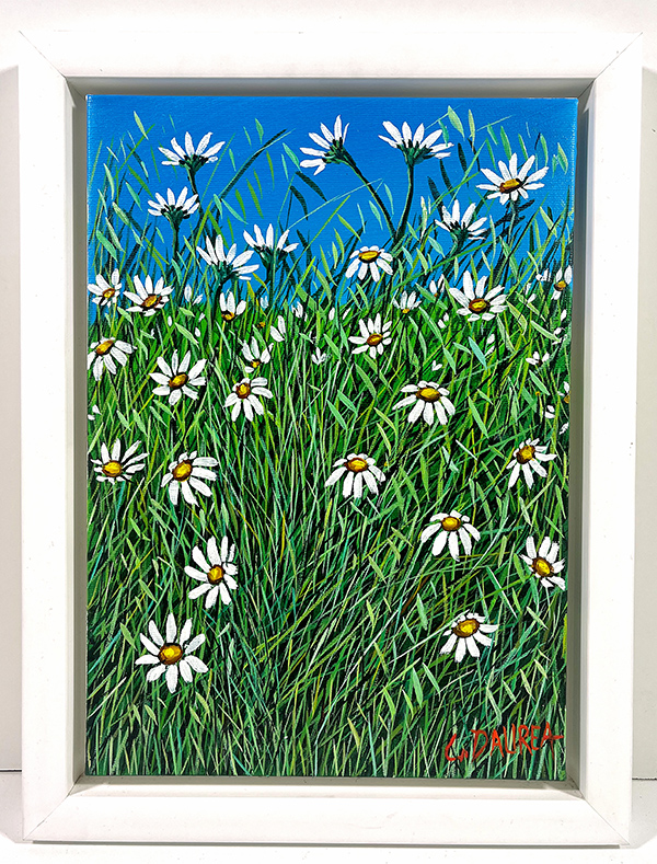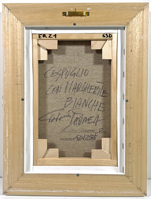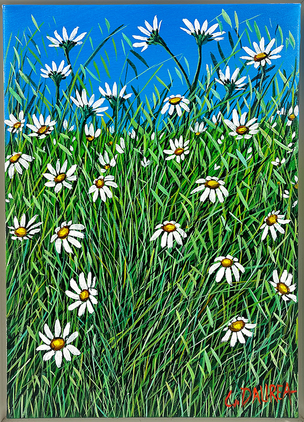 DAUREA GIOVANNI "Cespuglio con margherite bianche", olio su tela opera registrata presso l'archivio Giovanni Daurea GD125FR Titolo, firma e numero di archiviazione a retro. Autentica dell'artista su fotografia 25x35