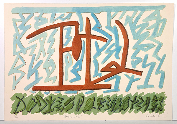 LICATA RICCARDO, "Memnone", litografia a colori, cm 34x49, Firma e anno in basso a destra, Titolo in basso in centro, Numerazione in basso a sinistra