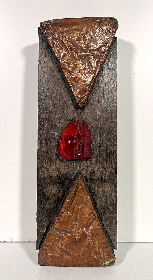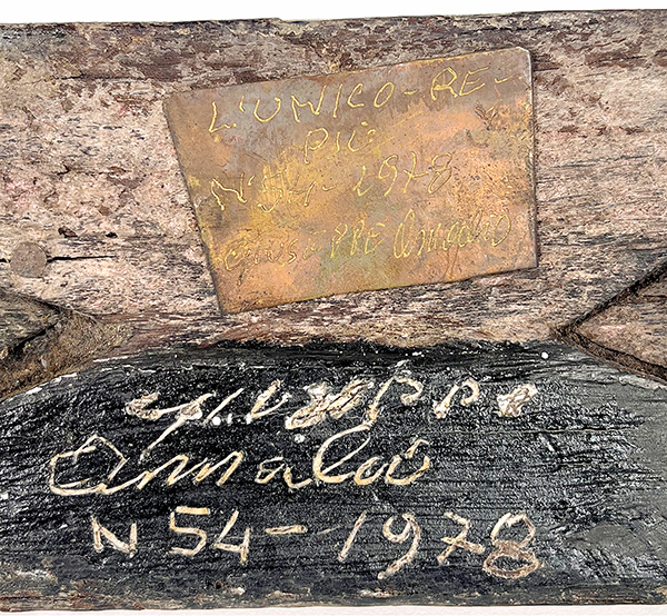 AMADIO GIUSEPPE , "L'UNICO - RE - PIU' N.54" scultura in legno da parete, anno 1978, Firma titolo e anno a retro, cm 33x8x10