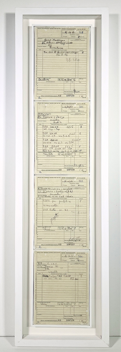 GOST GIORGIO, Inclusione in resina di documenti originalianni 80 scritti a mano. Opera registrata presso l'archivio Giorgio Gost. cm 80x15