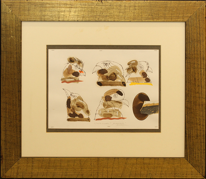 CONCETTO POZZATI, "Le sentinelle", anni '90, tecnica mista su carta, cm 25x35, con cornice cm 48x56x1,5, peso 1,5 kg. Opera con autentica su foto dell'artista al N°BA 176. Al fronte: firma, titolo in basso al centro. Opera con certificato di provenienza della Daliano Ribani Arte. Opera con cornice in omaggio.