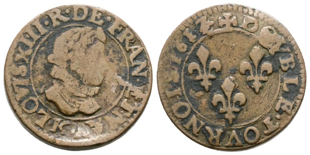 FRANCIA. Luigi XIII (1610-1643). Doppio Tornese 1617. KM# 59. CU. qBB