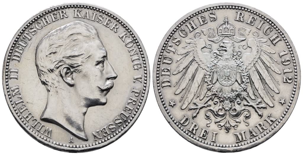 GERMANIA. BERLINO. Guglielmo II (1888-1918). 3 marchi 1912 "A". KM 527; Ag; 16,67gr. SPL