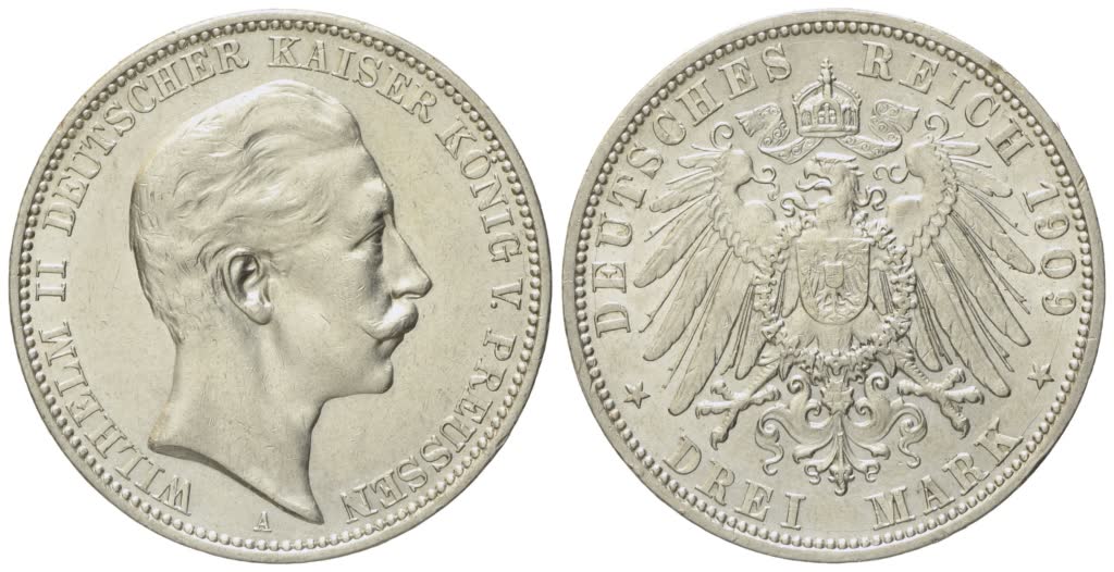 GERMANIA. Guglielmo II (1891-1918). 3 marchi 1909. KM 527; Ag; 16,67gr SPL