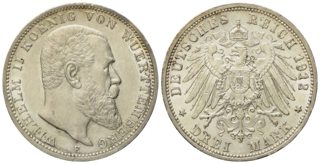 GERMANIA. WURTTEMBERG. Guglielmo II (1891-1918). 3 marchi 1912. KM 635; Ag; 16,67gr qFDC